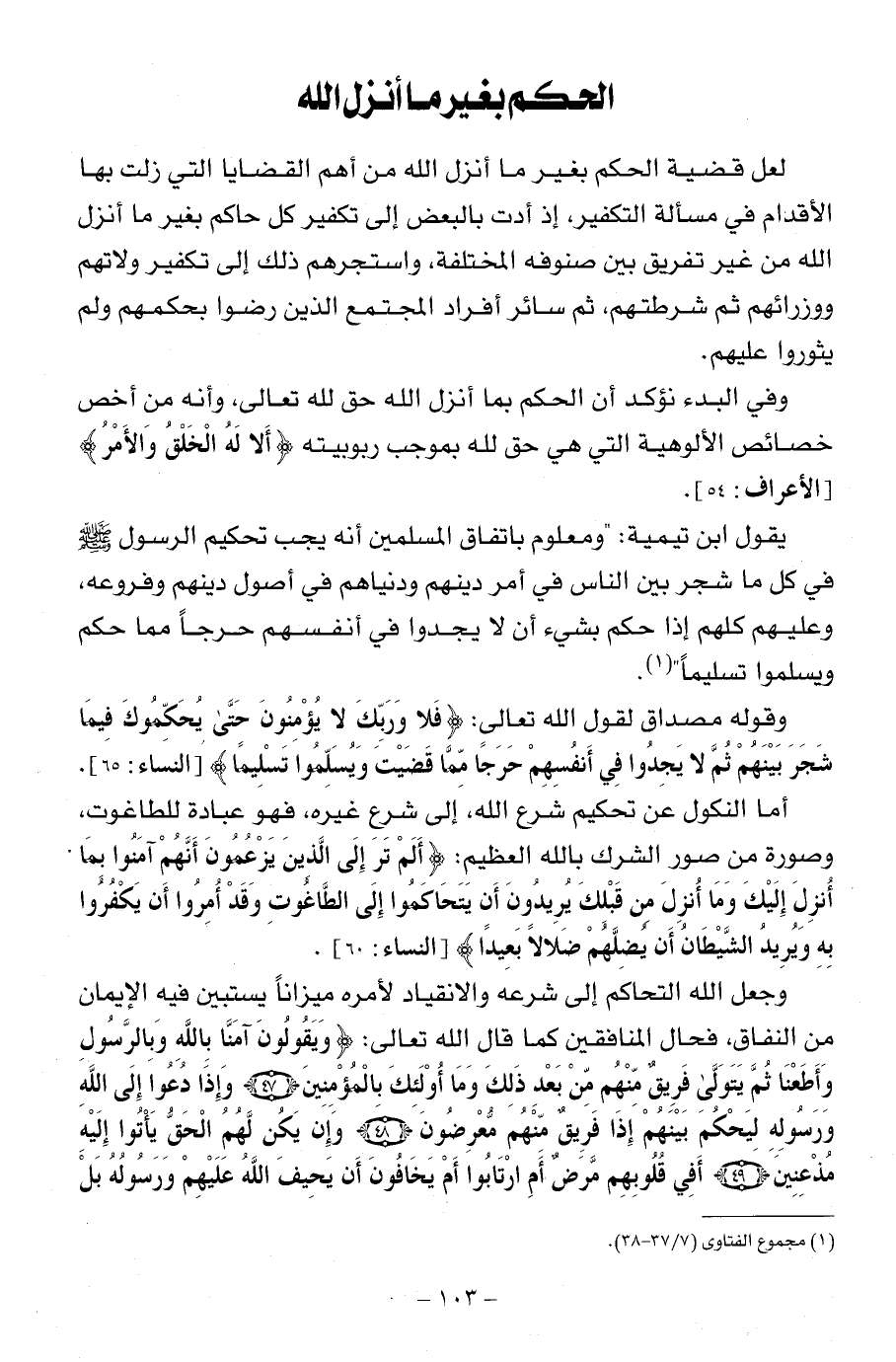وفي البدء نؤكد أن الحكم بما أنزل الله حق لله تعالى، وأنه من أخص خصائص الألوهية التي هي حق لله بموجب ربوبيته {ألا له الخلق والأمر} (الأعراف: 54).