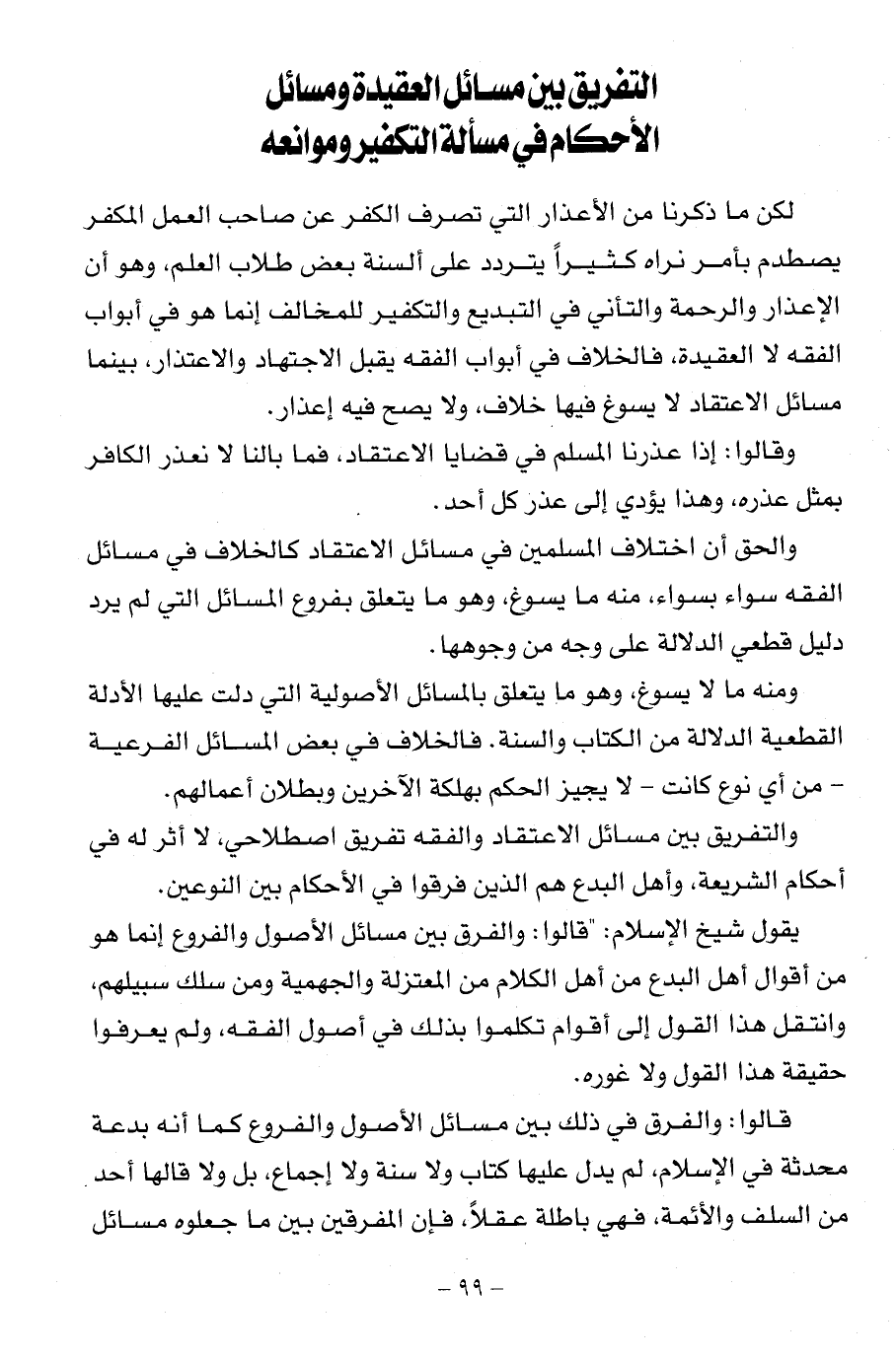 التفريق بين مسائل العقيدة ومسائل الأحكام في مسألة التكفير وموانعه