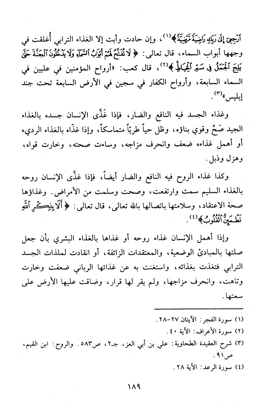 "قلت": ولعل هذه الشدة لأن الأجسام أوعية للأرواح ولكل جسم روح تناسب كثافته وحجمه، فإذا غلبت الروحانية على الجسم فإن الجسم ينوء بها فيعاني شدة ويعرق نتيجة الجهد، ويثقل لأن أجسام البشر خلقت لأرواح البشر فإذا سمت الروح وعلت فإن هذا الجسد لا يكاد يحتملها، والله أعلم.