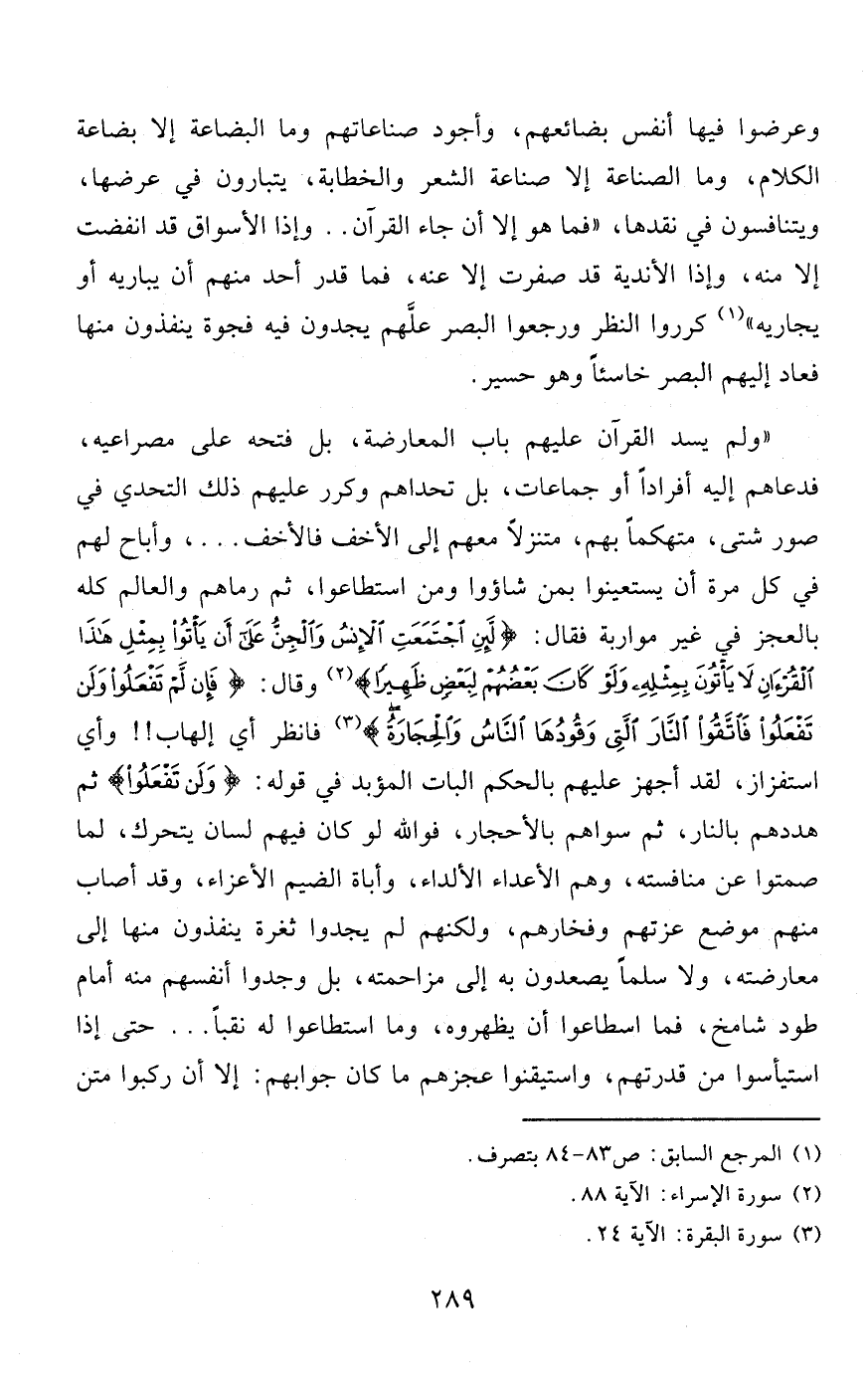 حاشا القرآن الكريم الذي جمع "قوة الحقيقة البرهانية" "وقوة المتعة الوجدانية" تدبروا في آيات القرآن الكريم فسترون أنها في معمعة البراهين والأحكام لا تنسى نصيب القلب والوجدان؛ ذلك أنها كلام الله رب العالمين الذي لا يشغله شأن عن شأن.