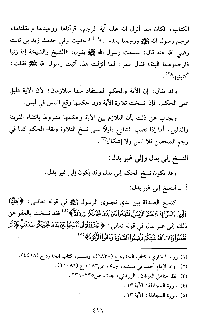 ومنها قوله تعالى: {وَالْمُطَلَّقَاتُ يَتَرَبَّصْنَ بِأَنْفُسِهِنَّ ثَلاثَةَ قُرُوءٍ} 3، فلفظ "المطلقات" عام يشمل الحامل وغير الحامل وخصص بقوله تعالى: {وَأُولاتُ الْأَحْمَالِ أَجَلُهُنَّ أَنْ يَضَعْنَ حَمْلَهُنَّ} 4 وغير ذلك من الأمثلة.