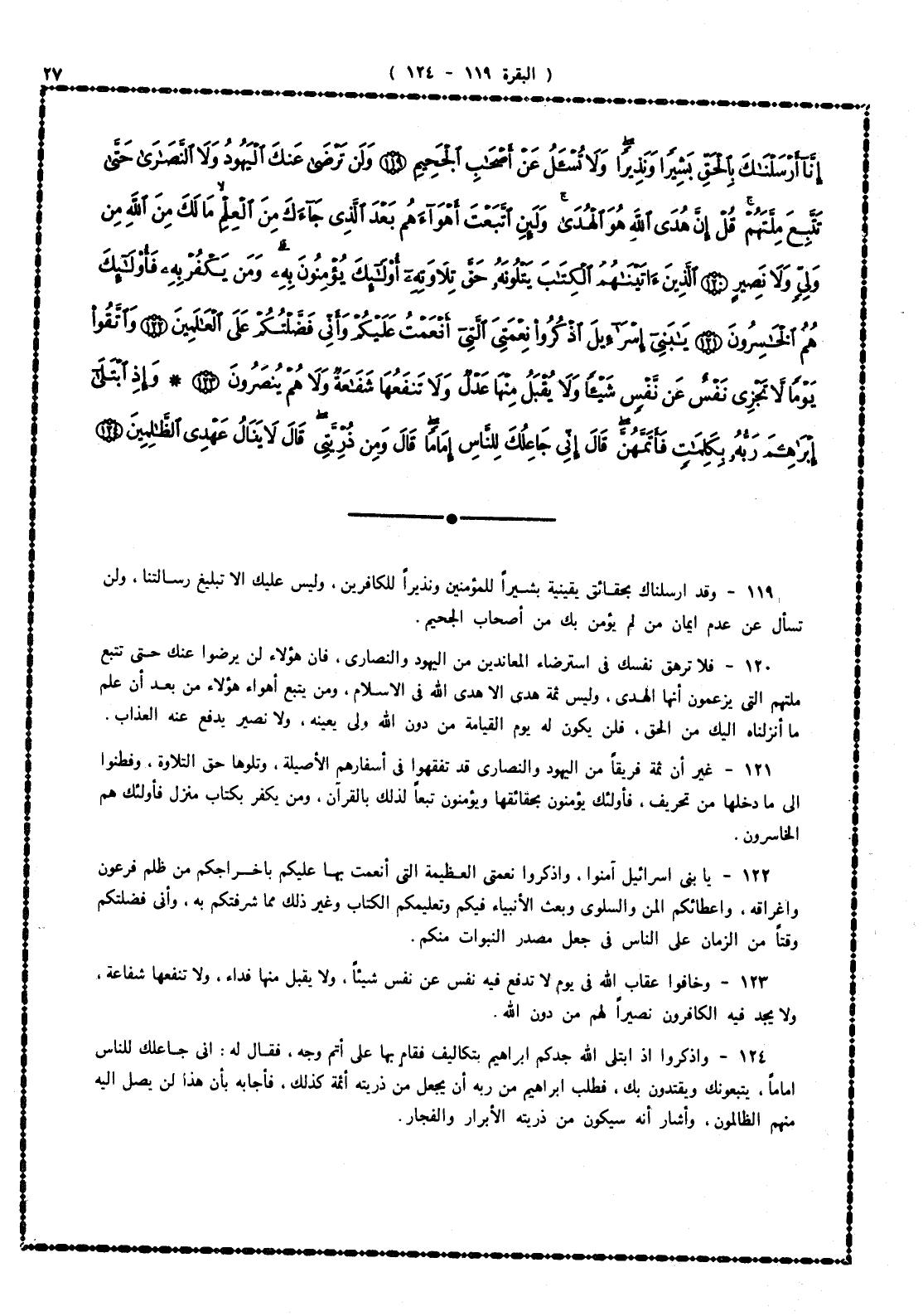 121 - غير أن ثمة فريقاً من اليهود والنصارى قد تفقهوا فى أسفارهم الأصيلة، وتلوها حق التلاوة، وفطنوا إلى ما دخلها من تحريف، فأولئك يؤمنون بحقائقها ويؤمنون تبعاً لذلك بالقرآن، ومن يكفر بكتاب منزل فأولئك هم الخاسرون.
