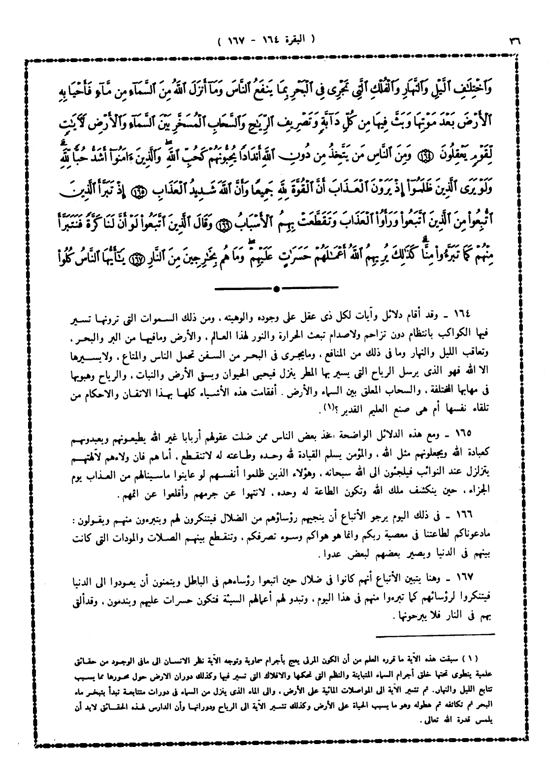 166 - فى ذلك اليوم يرجو الأتباعُ أن ينجيهم رؤساؤهم من الضلال فيتنكرون لهم ويتبرَّأون منهم ويقولون: ما دعوناكم لطاعتنا فى معصية ربكم، وإنما هو هواكم وسوء تصرفكم، وتنقطع بينهم الصلات والمودات التى كانت بينهم فى الدنيا، ويصير بعضهم لبعض عدواً.