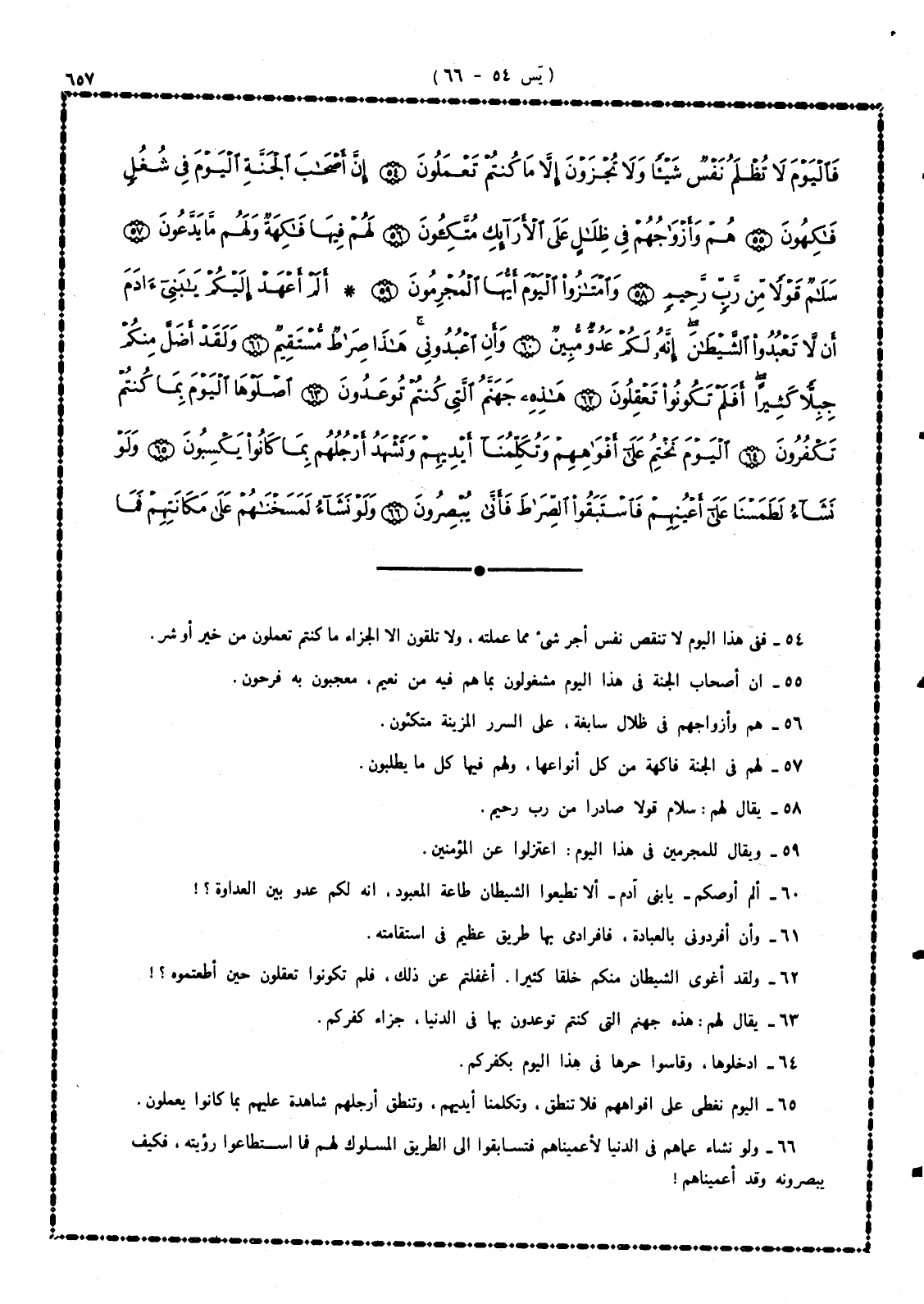 54 - ففى هذا اليوم لا تنقص نفس أجر شئ مما عملته، ولا تلقون إلا جزاء ما كنتم تعملون من خير أو شر.