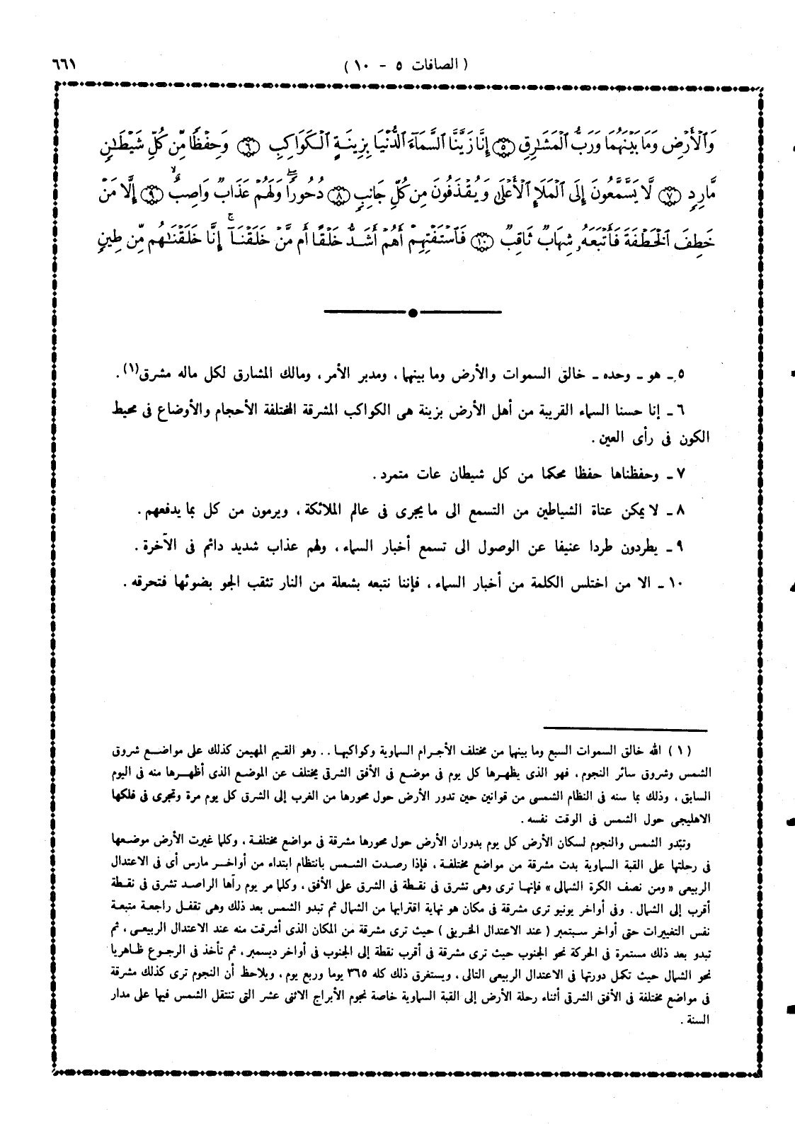 6 - إنَّا جمَّلْنا السماء القريبة من أهل الأرض بزينة هى الكواكب المشرقة المختلفة الأحجام والأوضاع فى محيط الكون التى نراها كل مساء بالعين المجردة.