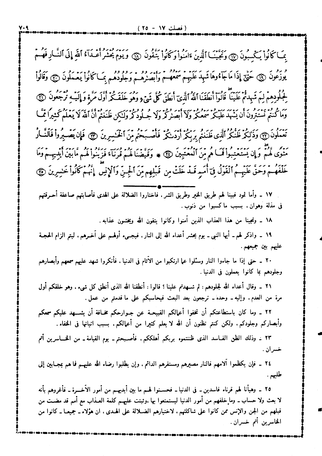 20 - حتى إذا ما جاءوا النار وسئلوا عما ارتكبوا من الآثام فى الدنيا، فأنكروا، شهد عليهم سمعهم وأبصارهم وجلودهم بما كانوا يعملون فى الدنيا.