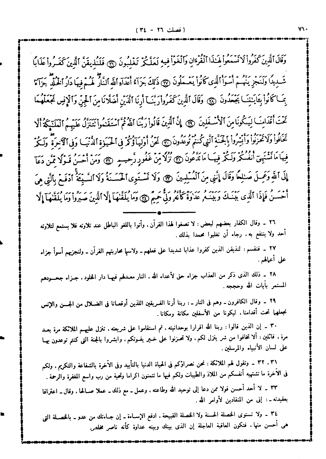 26 - وقال الكفار بعضهم لبعض: لا تصغوا لهذا القرآن، وأتوا باللغو الباطل عند تلاوته فلا يستمع لتلاوته أحد ولا ينتفع به، رجاء أن تغلبوا محمداً بذلك.
