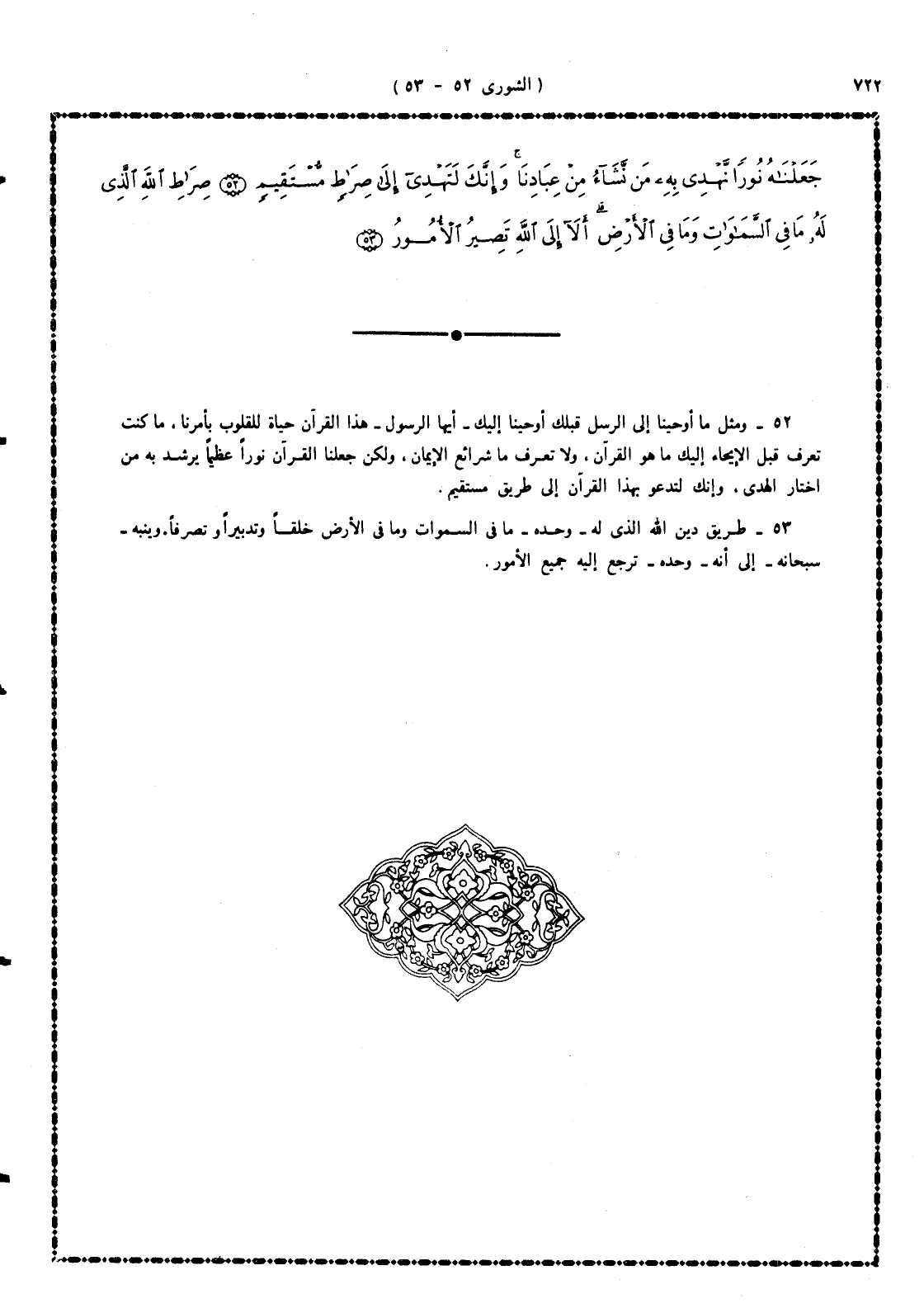 53 - صراط الله طريقه الذى له - وحده - ما فى السموات وما فى الأرض وهذا ما تدعو إليه - يا محمد - وما نزلت به رسالتك، ليعلم الناس أن إلى الله وحده - تصير كل الأمور.