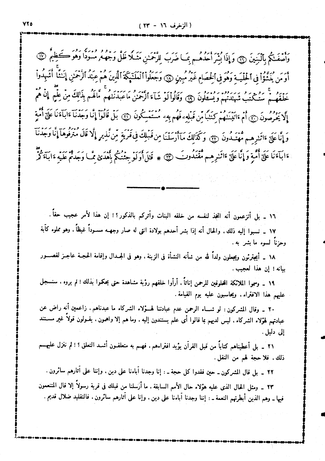 17 - نسبوا إليه ذلك، والحال أنه إذا بشر أحدهم بولادة أنثى له صار وجهه مسوداً غيظاً، وهو مملوء كآبة وحزناً لسوء ما بُشِّر به.