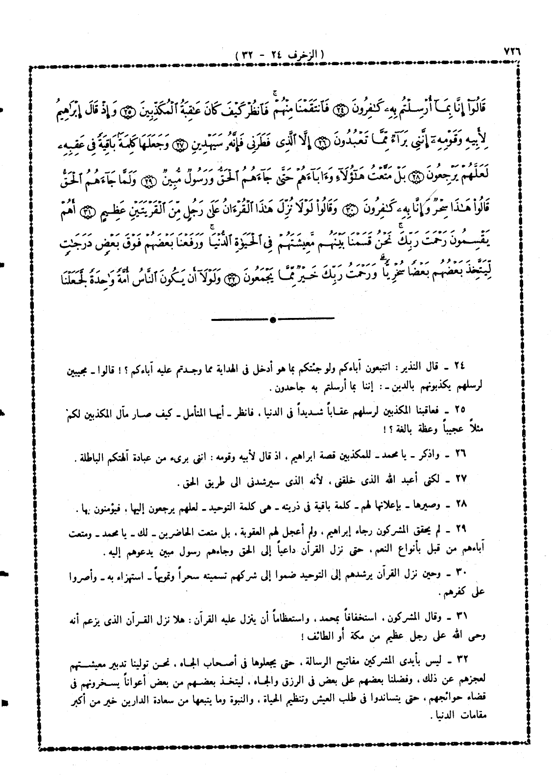 32 - ليس بأيدى المشركين مفاتيح الرسالة، حتى يجعلوها فى أصحاب الجاه، نحن تولينا تدبير معيشتهم لعجزهم عن ذلك، وفضلنا بعضهم على بعض فى الرزق والجاه، ليتخذ بعضهم من بعض أعواناً يسخرونهم فى قضاء حوائجهم، حتى يتساندوا فى طلب العيش وتنظيم الحياة والنبوة وما يتبعها من سعادة الدارين خير من أكبر مقامات الدنيا.