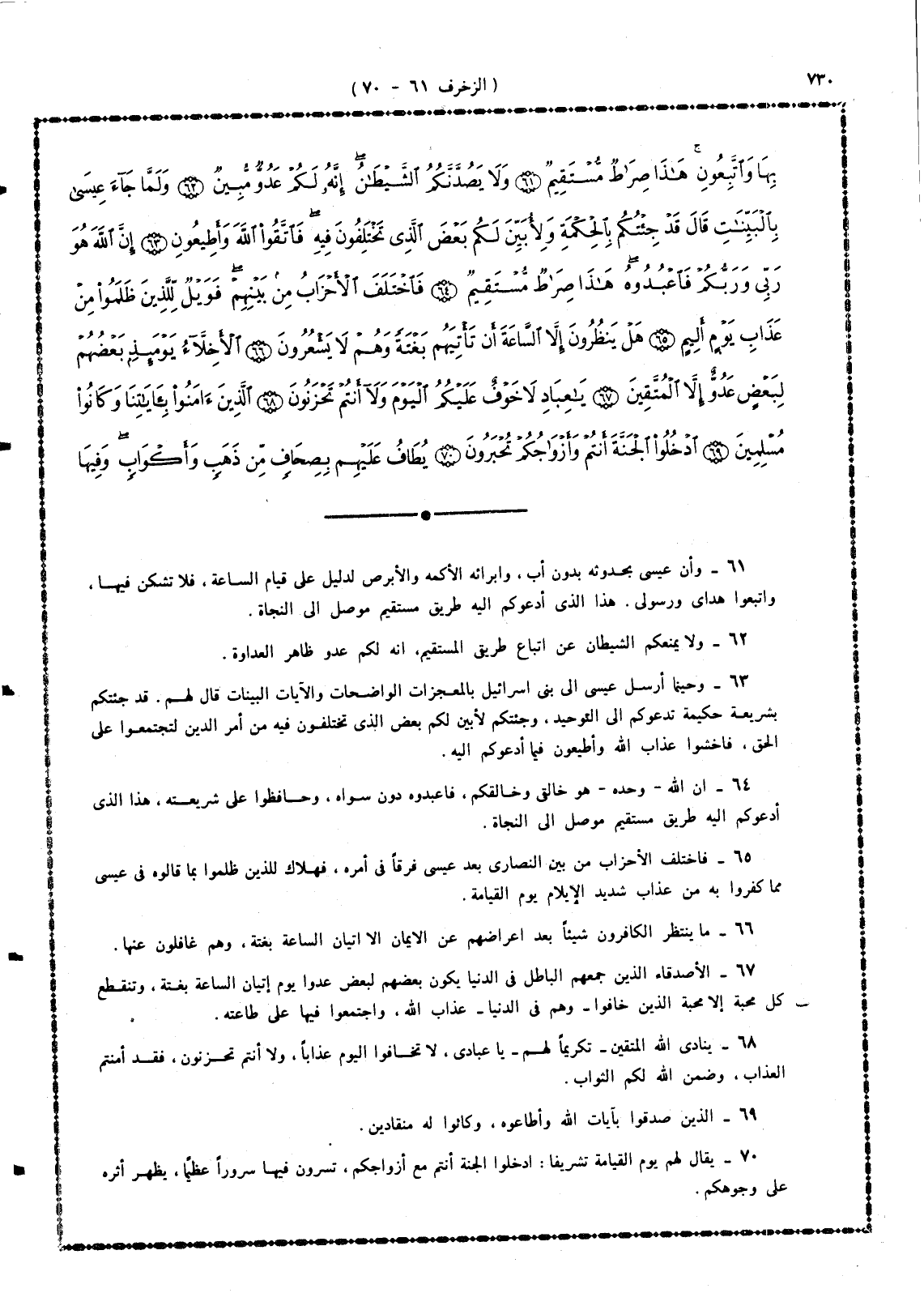 68 - ينادى الله المتقين - تكريماً لهم - يا عبادى، لا تخافوا اليوم عذاباً، ولا أنتم تحزنون، فقد أمنتم العذاب، وضمن الله لكم الثواب.