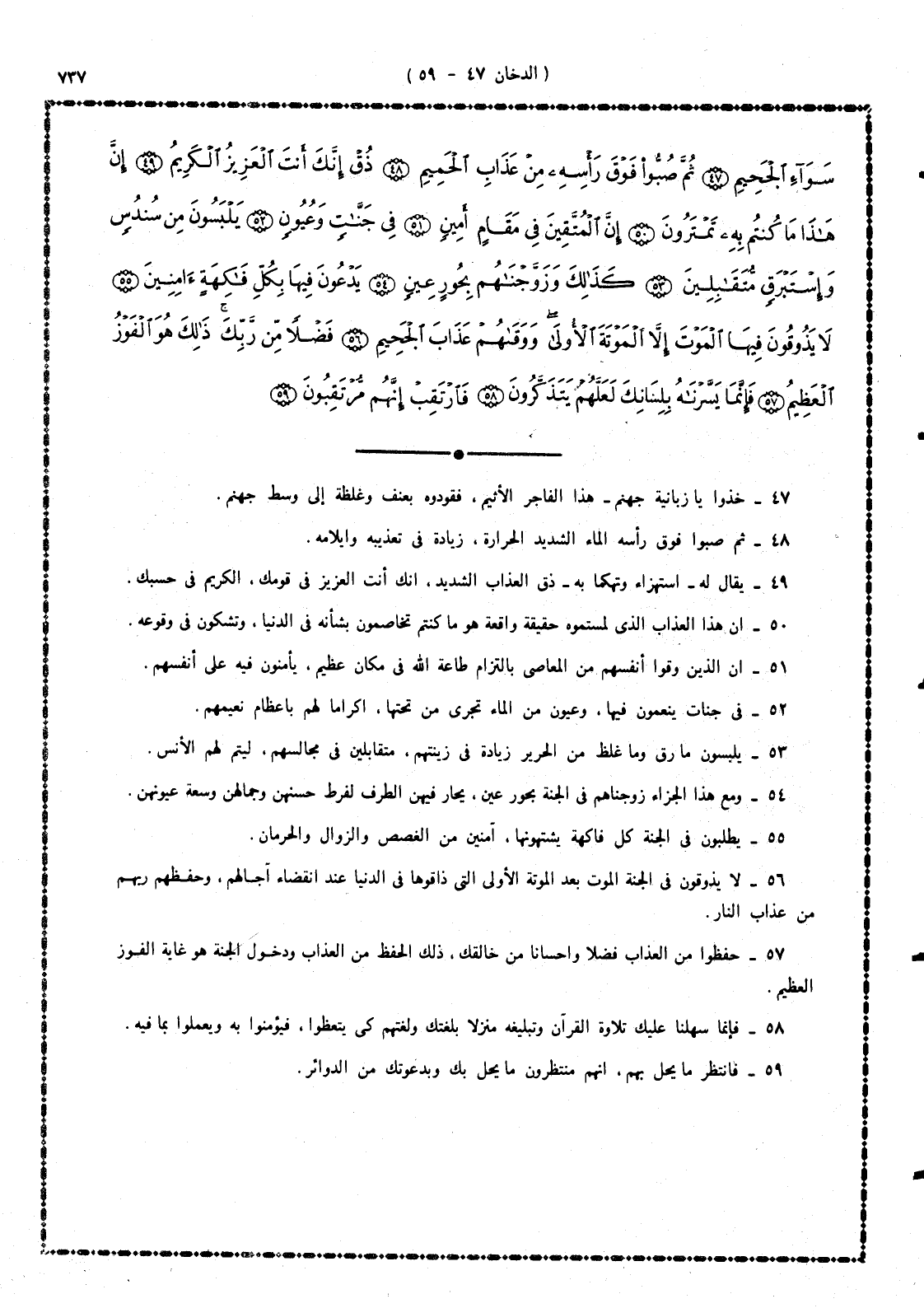 47 - خذوا - يا زبانية جهنم - هذا الفاجر الأثيم فقودوه بعنف وغلظة إلى وسط جهنم.