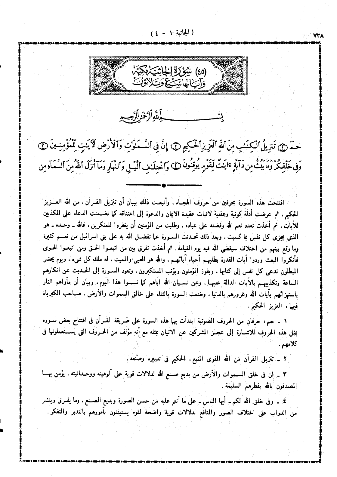 1 - حم: حرفان من الحروف الصوتية ابتدأت بهما هذه السورة على طريقة القرآن فى افتتاح بعض سوره بمثل هذه الحروف للإشارة إلى عجز المشركين عن الإتيان بمثله مع أنه مؤلف من الحروف التى يستعملونها فى كلامهم.