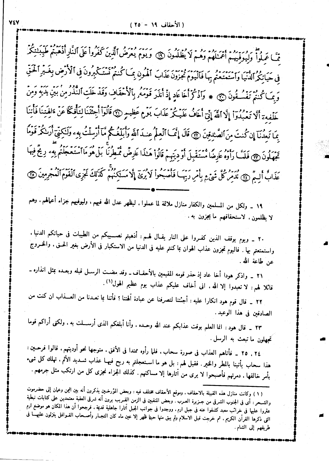21 - واذكر هوداً أخا عاد إذ حذَّر قومه المقيمين بالأحقاف - وقد مضت الرسل قبله وبعده بمثل إنذاره - قائلاً لهم: لا تعبدوا إلا الله إنى أخاف عليكم عذاب يوم عظيم الهول.
