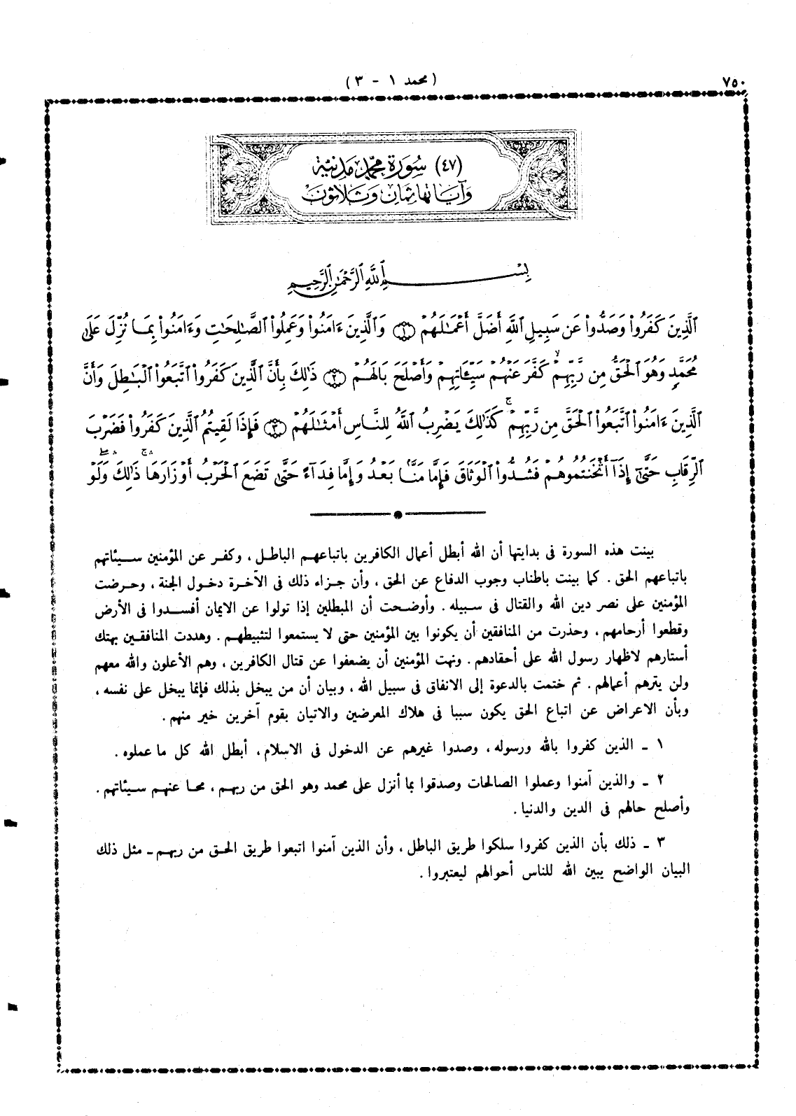3 - ذلك بأن الذين كفروا سلكوا طريق الباطل، وأن الذين آمنوا اتبعوا طريق الحق من ربهم، مثل ذلك البيان الواضح يُبَيِّن الله للناس أحوالهم ليعتبروا.