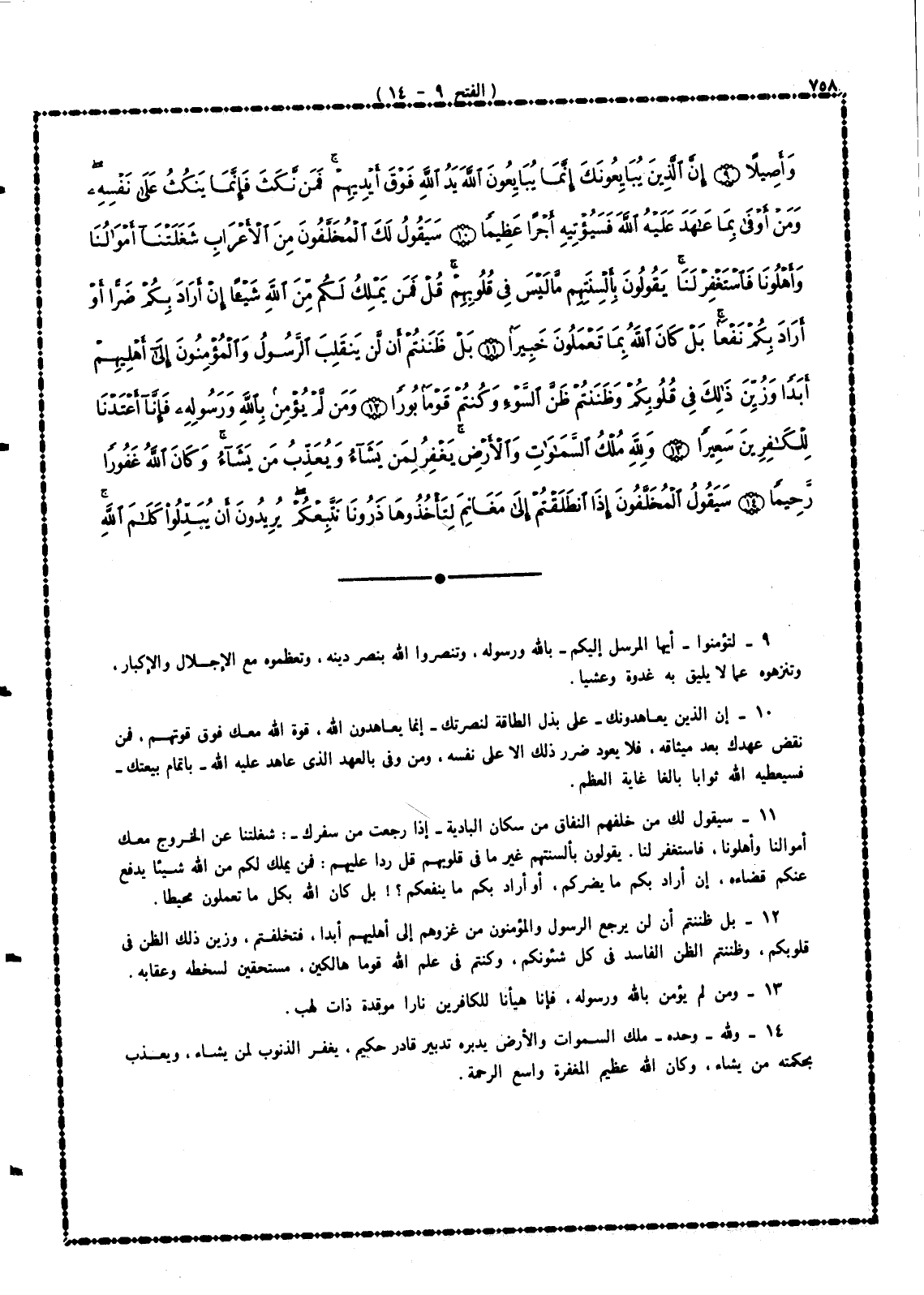 10 - إن الذين يعاهدونك - على بذل الطاقة لنصرتك - إنما يعاهدون الله، قوة الله معك فوق قوتهم، فمن نقض عهدك بعد ميثاقه، فلا يعود ضرر ذلك إلا على نفسه، ومَن وفَّى بالعهد الذى عاهد الله عليه - بإتمام بيعتك - فسيعطيه الله ثوابا بالغا غاية العظم.