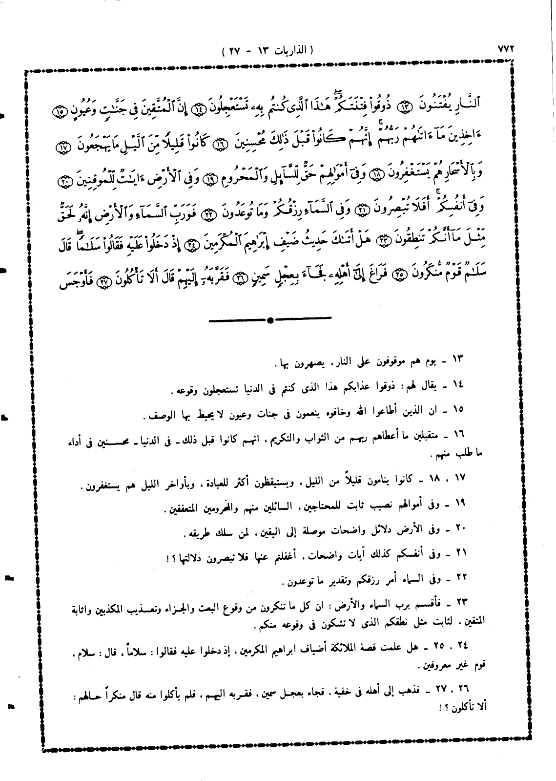 24 -، 25 - هل علمت قصة الملائكة أضياف إبراهيم المكرمين إذ دخلوا عليه فقالوا: سلاماً، قال: سلام قوم غير معروفين.