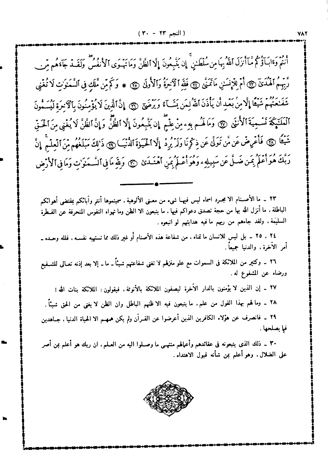 23 - ما الأصنام إلا مجرد أسماء ليس فيها شئ من معنى الألوهية، سميتموها أنتم وآباؤكم بمقتضى أهوائكم الباطلة، ما أنزل الله بها من حُجَّة تُصدق دعواكم فيها، ما يتبعون إلا الظن وما تهواه النفوس المنحرفة عن الفطرة السليمة، ولقد جاءهم من ربهم ما فيه هدايتهم لو اتبعوه.