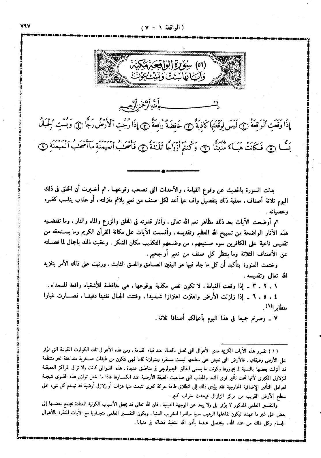 4 -، 5، 6 - إذا زُلزلت الأرض واهتزت اهتزازاً شديداً، وفتتت الجبال تفتيتاً دقيقاً، فصارت غباراً متطايراً.