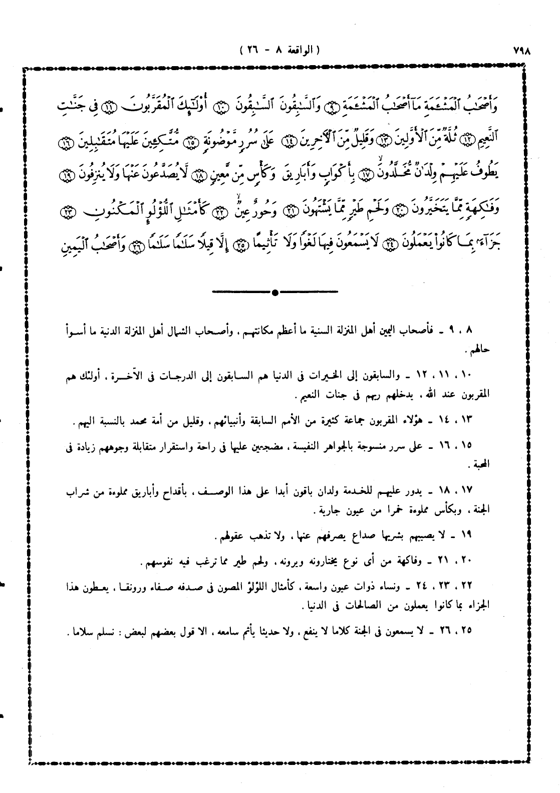 8 -، 9 - فأصحاب اليمين أهل المنزلة السنية ما أعظم مكانتهم، وأصحاب الشمال أهل المنزلة الدنية ما أسوأ حالهم.