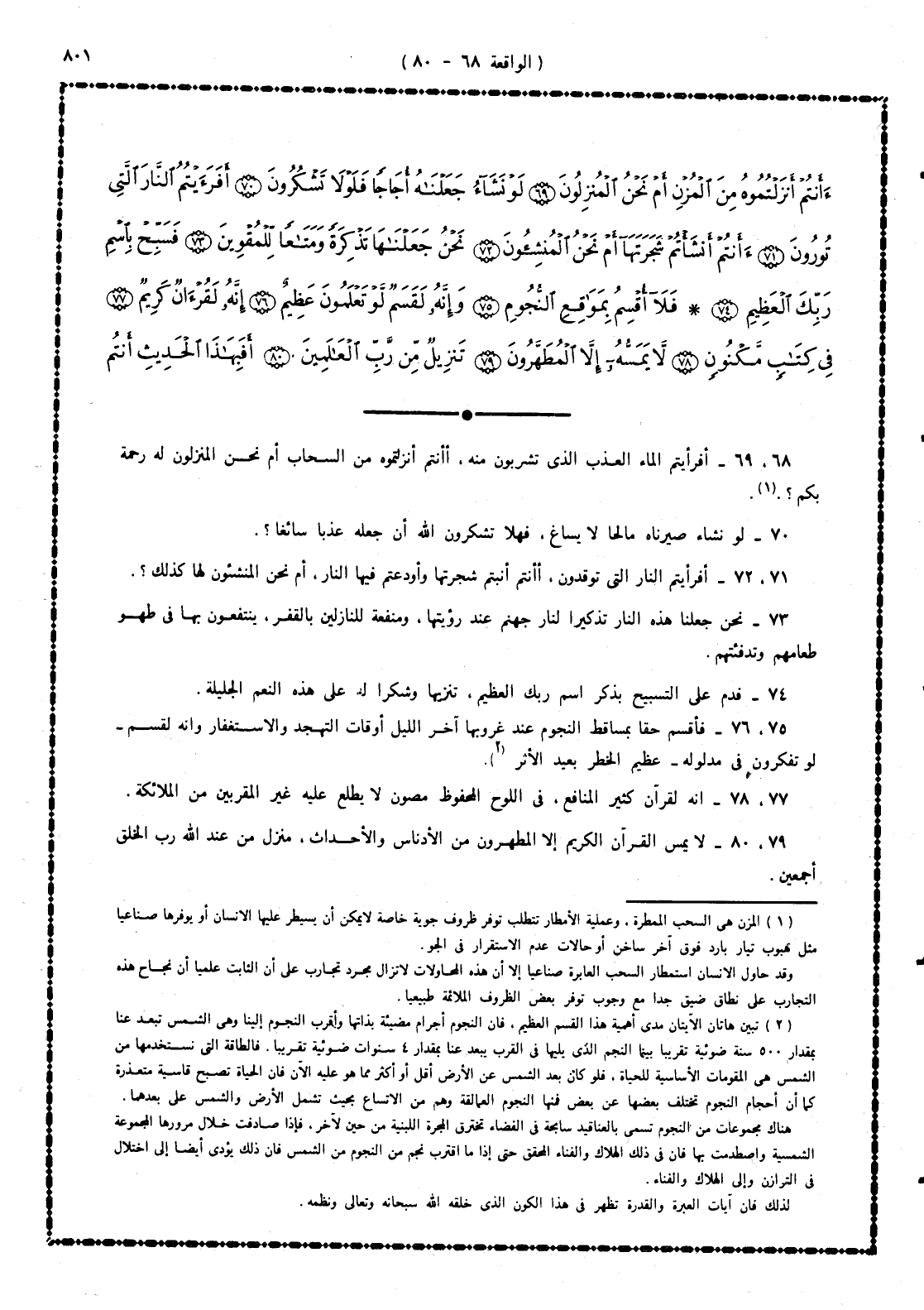 75 -، 76 - فأقسم - حقا - بمساقط النجوم عند غروبها آخر الليل أوقات التهجد والاستغفار، وإنه لقسم - لو تفكرون فى مدلوله - عظيم الخطر بعيد الأثر.