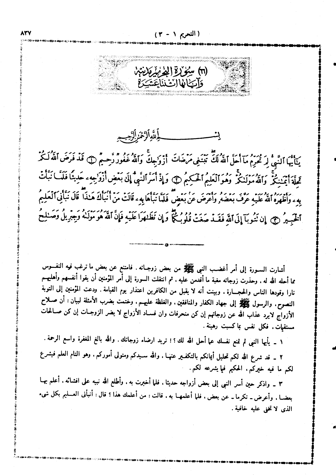 1 - يا أيها النبى لِمَ تمنع نفسك عمَّا أحل الله لك؟! تريد إرضاء زوجاتك، والله بالغ المغفرة واسع الرحمة.