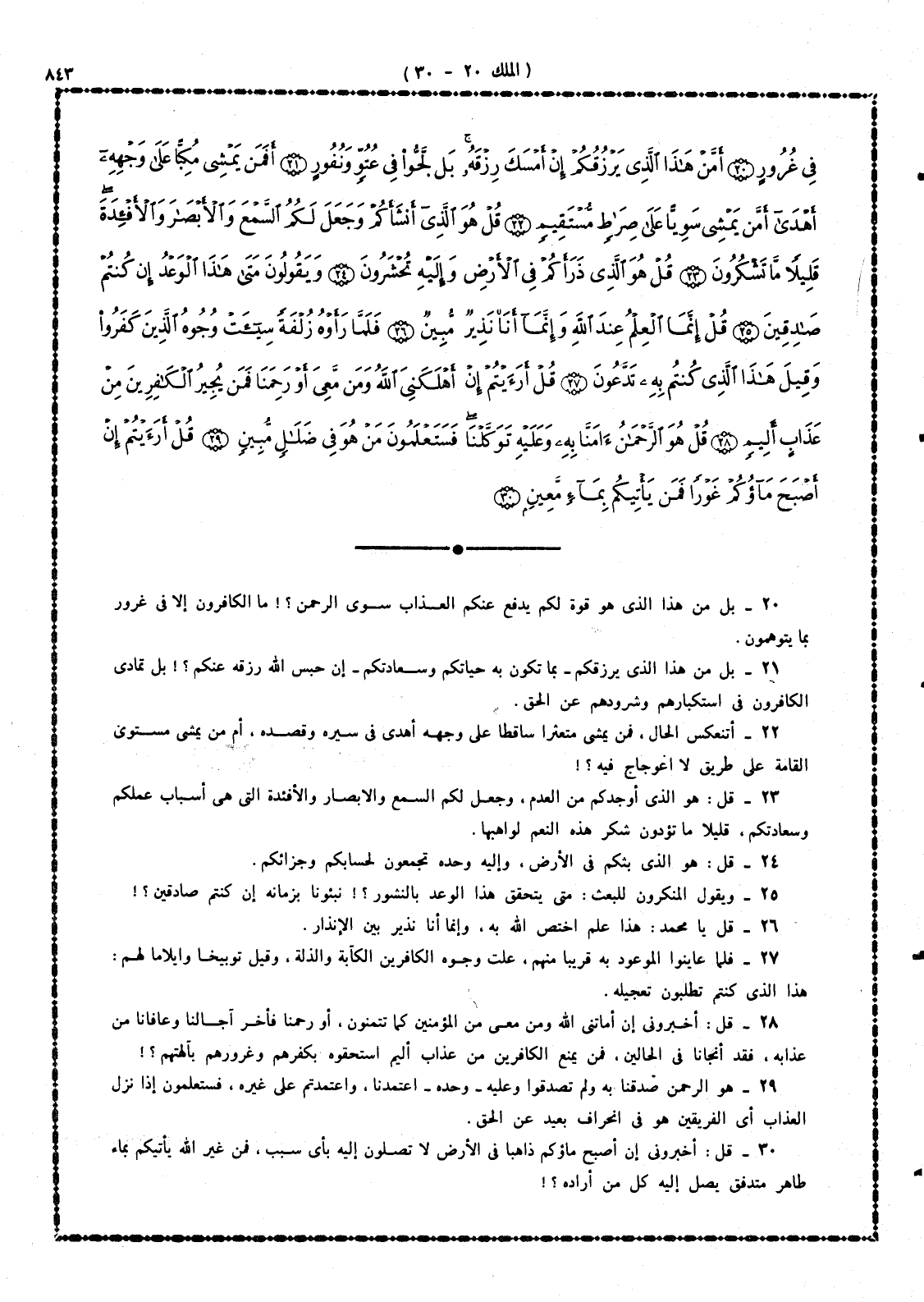 20 - بل من هذا الذى هو قوة لكم يدفع عنكم العذاب سوى الرحمن؟ {ما الكافرون إلا فى غرور بما يتوهمون.