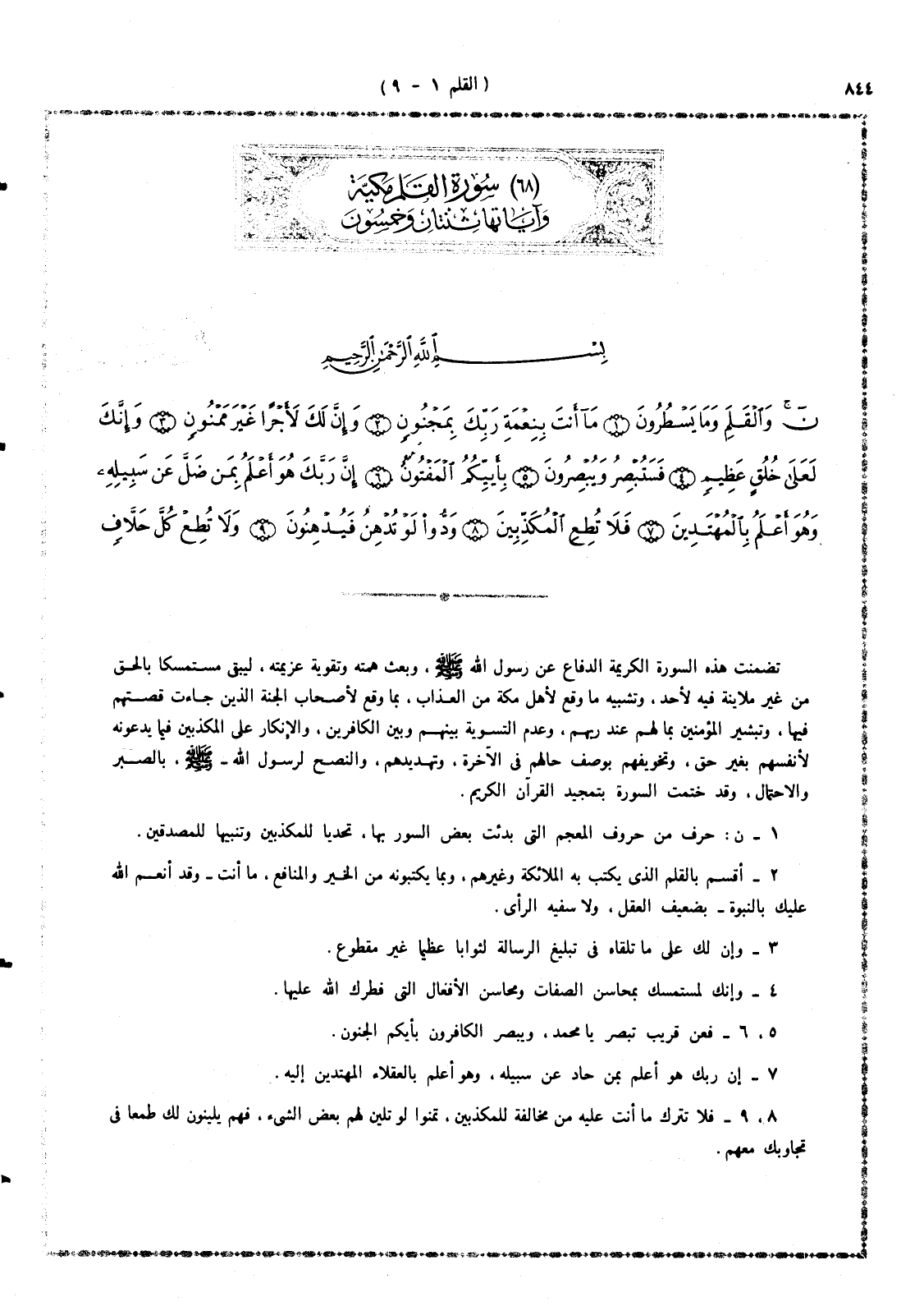 1 - ن: حرف من حروف المعجم التى بدئت بعض السور بها تحدياً للمكذبين وتنبيهاً للمصدقين.