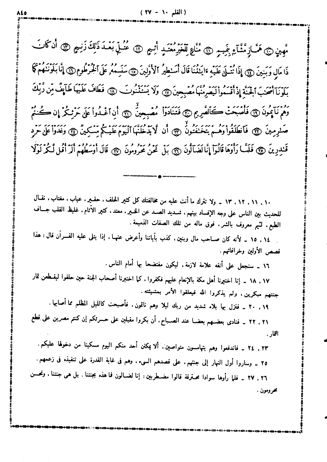 10 -، 11، 12، 13 - ولا تترك ما أنت عليه من مخالفتك كُلّ كَثِيرِ الحلف. حقير. عيّاب. مغتاب. نقّال للحديث بين الناس على وجه الإفساد بينهم. شديد الصد عن الخير. معتد. كثير الآثام. غليظ القلب. جاف الطبع. لئيم معروف الشر. فوق ما له من تلك الصفات الذميمة.