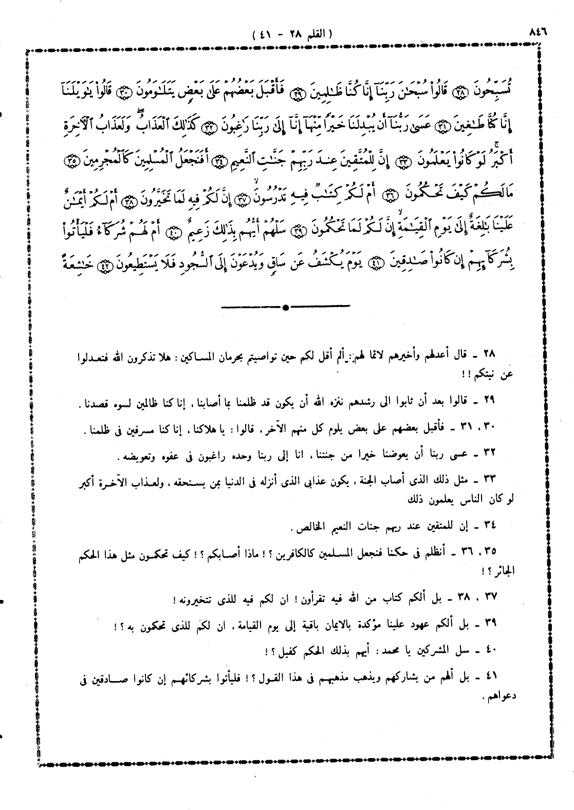 28 - قال أعدلهم وأخيرهم - لائماً لهم -: ألم أقل لكم حين تواصيتم بحرمان المساكين: هلا تذكرون الله فتعدلوا عن نيتكم؟ {