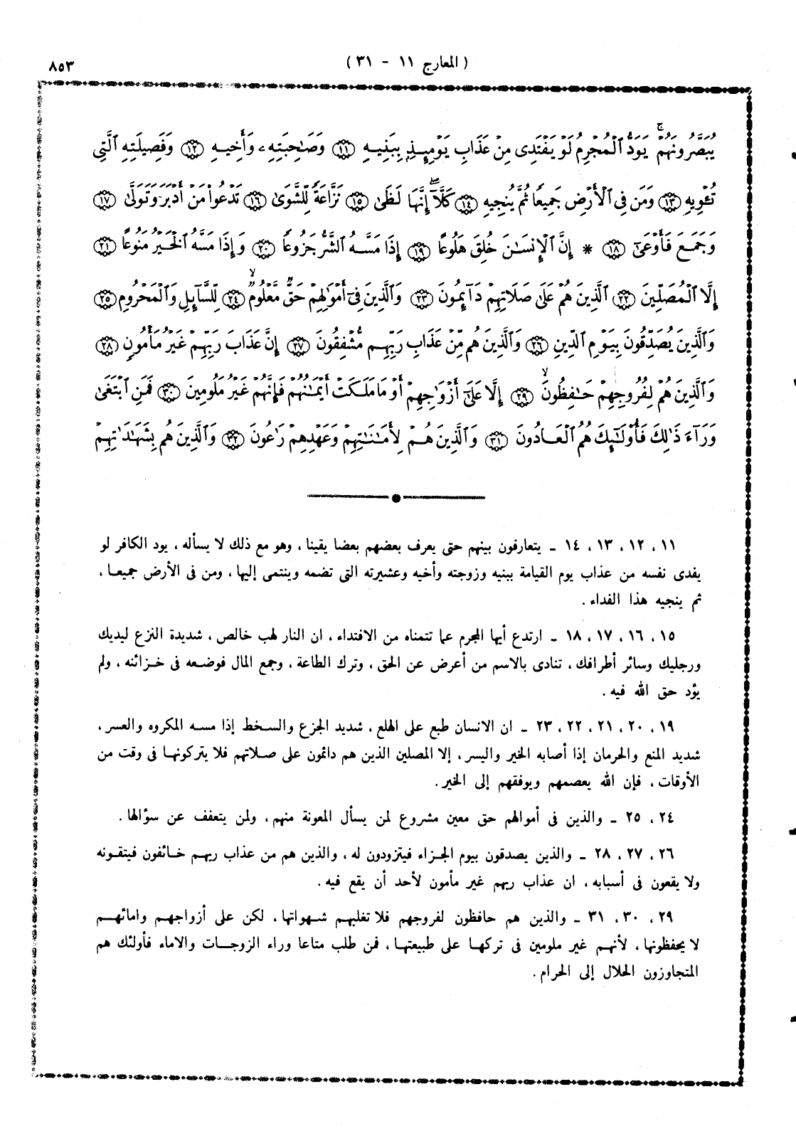 11 -، 12، 13، 14 - يتعارفون بينهم حتى يعرف بعضهم بعضاً - يقيناً - وهو مع ذلك لا يسأله. يود الكافر لو يفدى نفسه من عذاب يوم القيامة ببنيه، وزوجته وأخيه، وعشيرته التى تضمه وينتمى إليها، ومن فى الأرض جميعاً، ثم يُنجيه هذا الفداء.