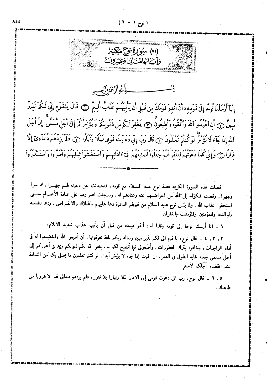 1 - إنا أرسلنا نوحاً إلى قومه، وقلنا له: أنذر قومك من قبل أن يأتيهم عذاب شديد الإيلام.