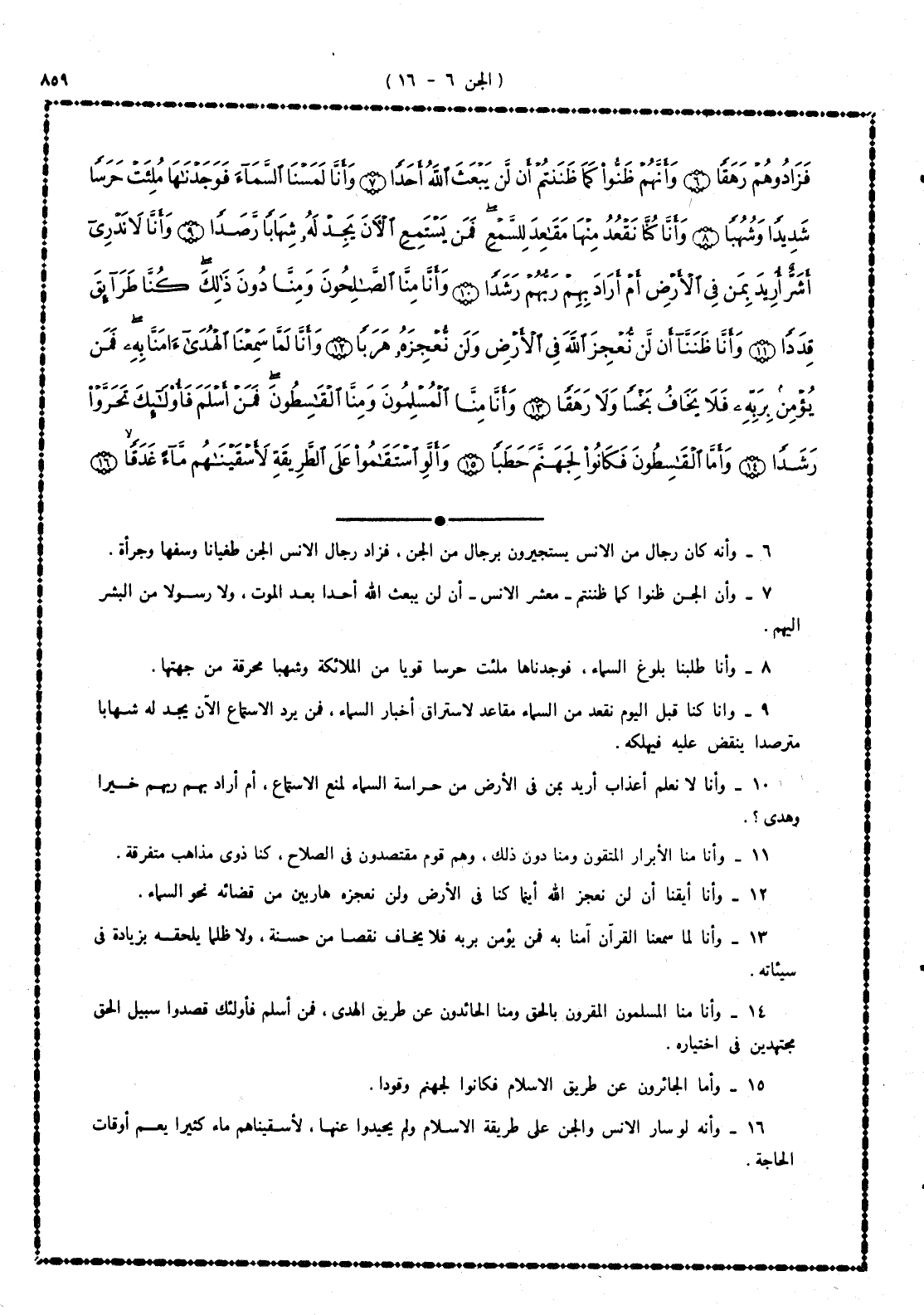13 - وأنا لما سمعنا القرآن آمنا به، فمن يؤمن بربه فلا يخاف نقصاً من حسنة، ولا ظلماً يلحقه بزيادة فى سيئاته.