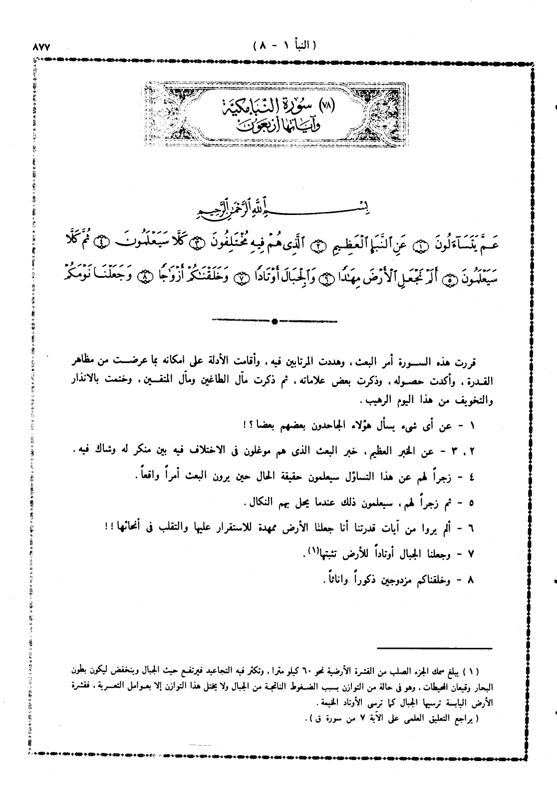 7 - وجعلنا الجبال أوتاداً للأرض تُثَبِّتها.