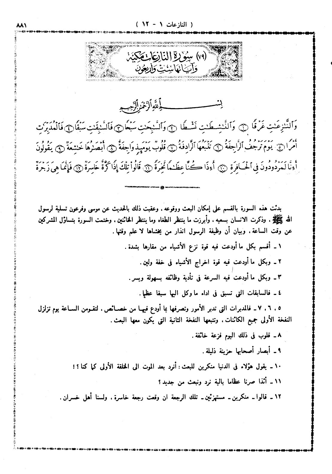 1 - أقسم بكل ما أودعت فيه قوة نزع الأشياء من مقارها بشدة.