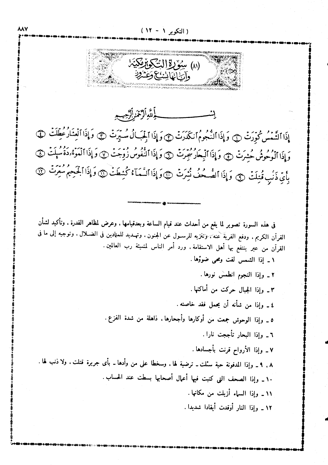 1 - إذا الشمس لُفَّتْ ومُحِىَ ضوؤها.