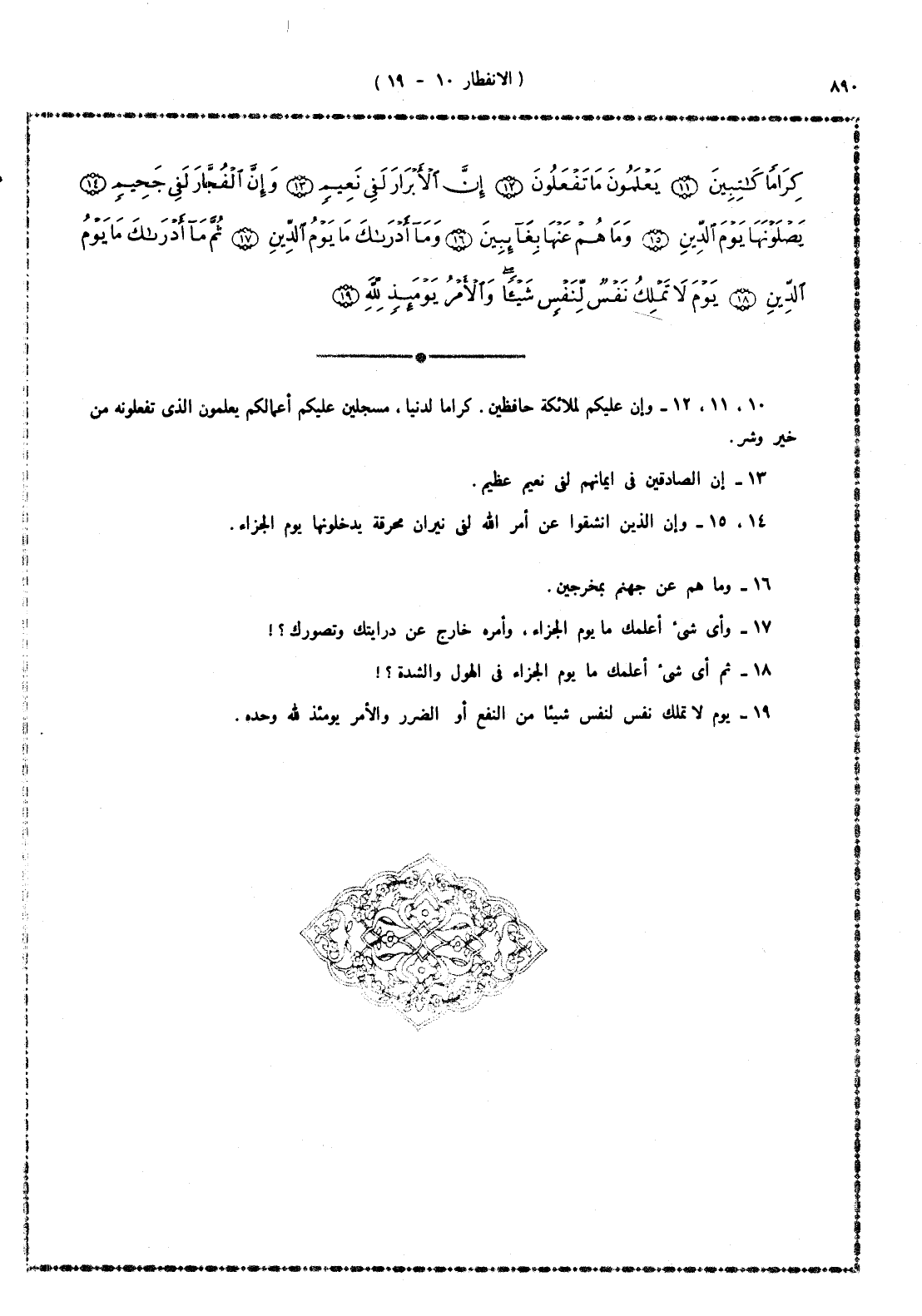 10 -، 11، 12 - وإن عليكم لملائكة حافظين، كراماً لدينا، مسجلين عليكم أعمالكم، يعلمون الذى تفعلونه من خير وشر.
