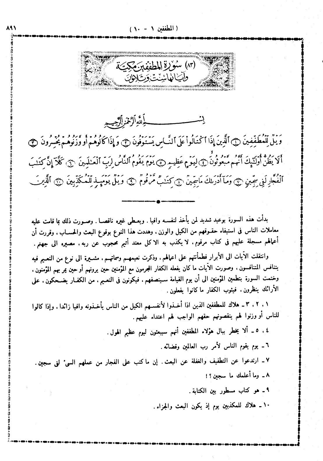 1 -، 2، 3 - هلاك للمطففين. الذين إذا أخذوا لأنفسهم الكيل من الناس يأخذونه وافيا زائدا، وإذا كالوا للناس أو وزنوا لهم ينقصونهم حقهم الواجب لهم اعتداء عليهم.