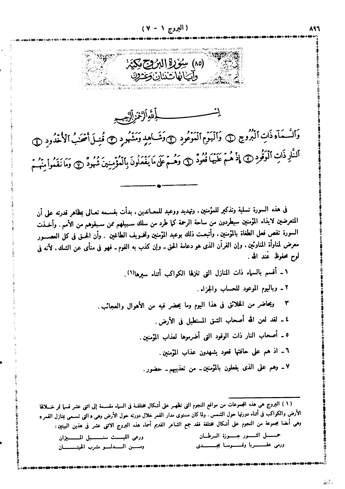 1 - أقسم بالسماء ذات المنازل التى تنزلها الكواكب أثناء سيرها.