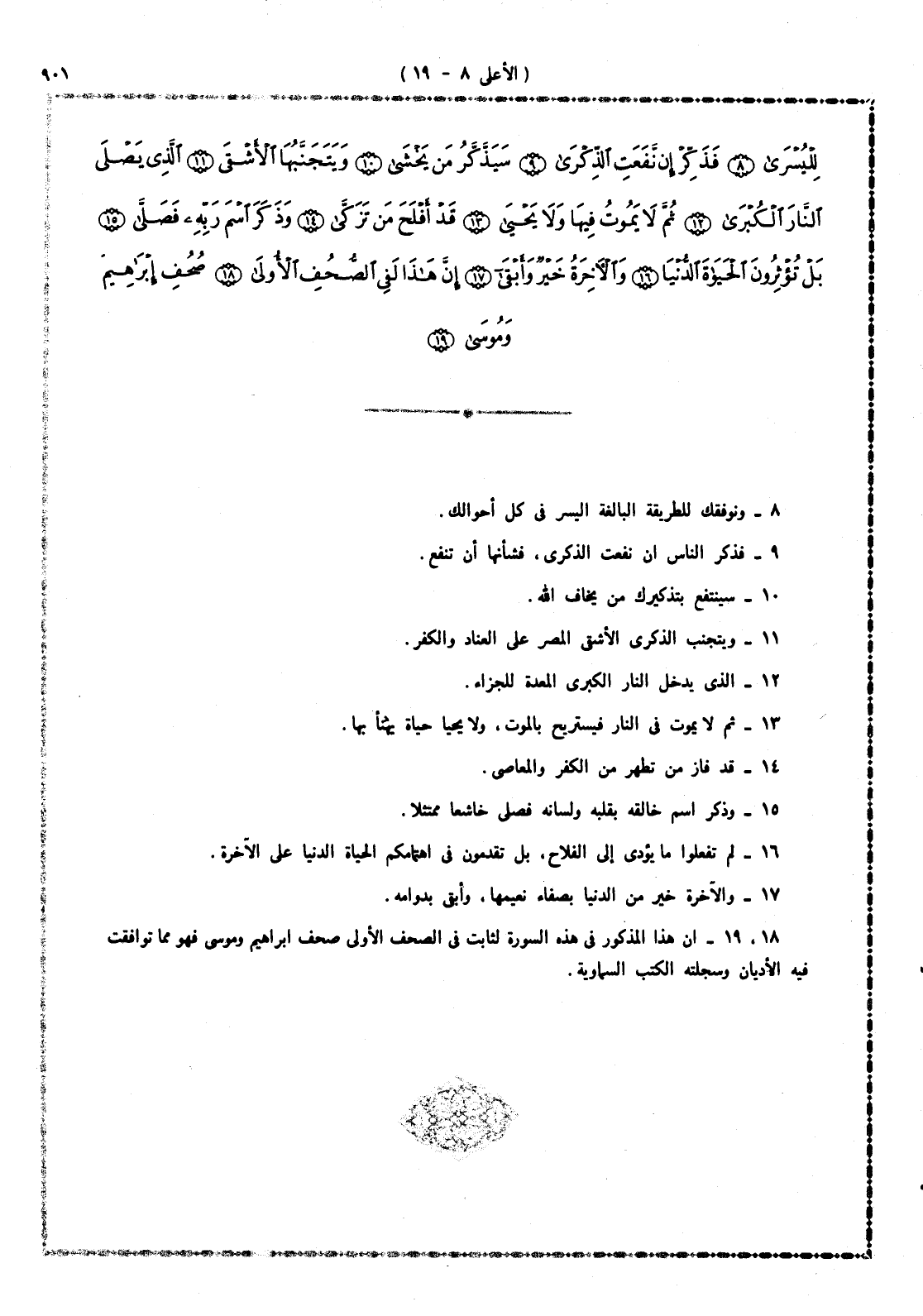 18 -، 19 - إن هذا المذكور فى هذه السورة لثابت فى الصحف الأولى - صحف إبراهيم وموسى - فهو مما توافقت فيه الأديان وسجلته الكتب السماوية.