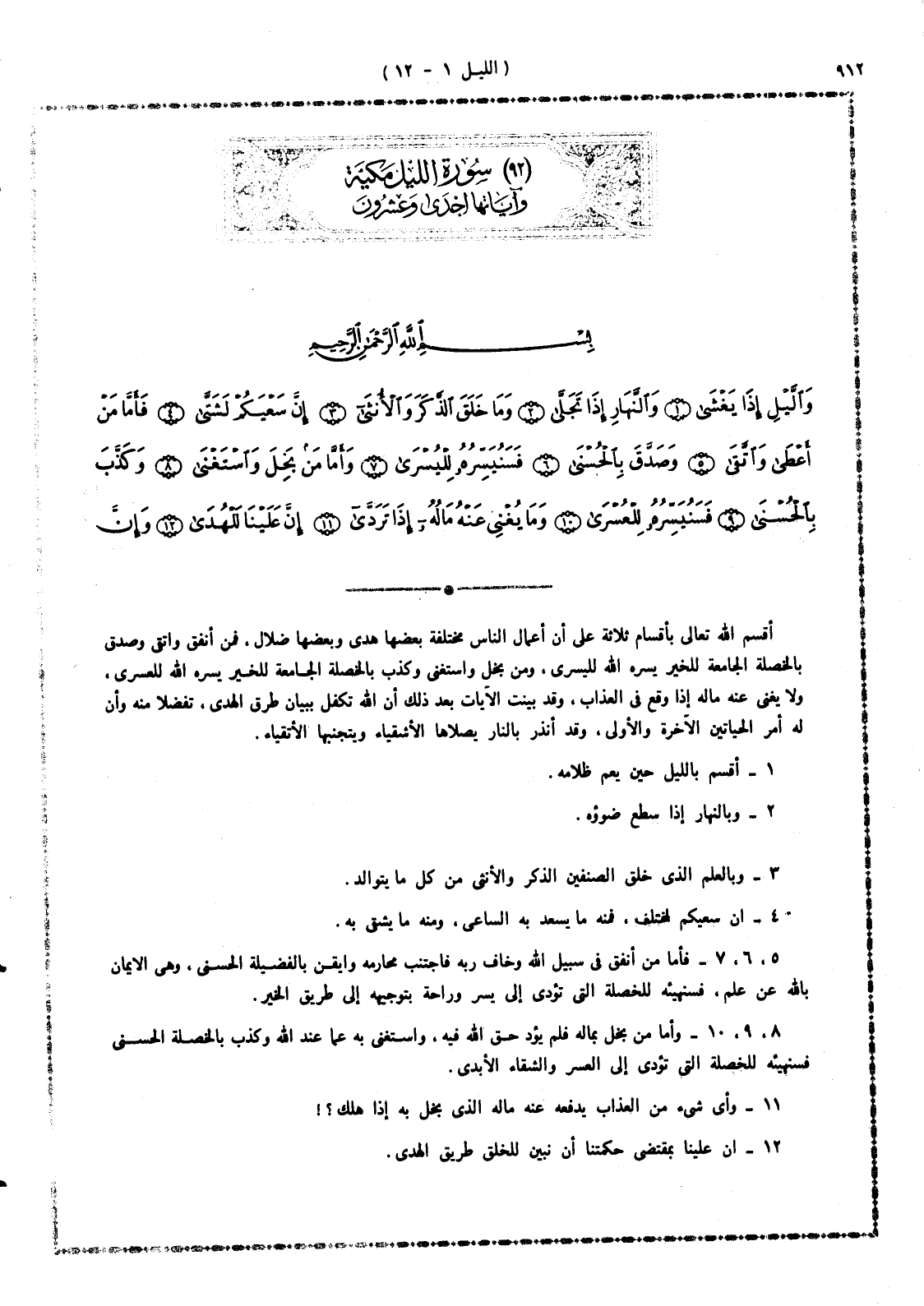 5 -، 6، 7 - فأما مَن أنفق فى سبيل الله، وخاف ربه فاجتنب محارمه، وأيقن بالفضيلة الحسنى، وهى الإيمان بالله عن علم، فسنهيئه للخصلة التى تؤدى إلى يسر وراحة بتوجيهه إلى طريق الخير.