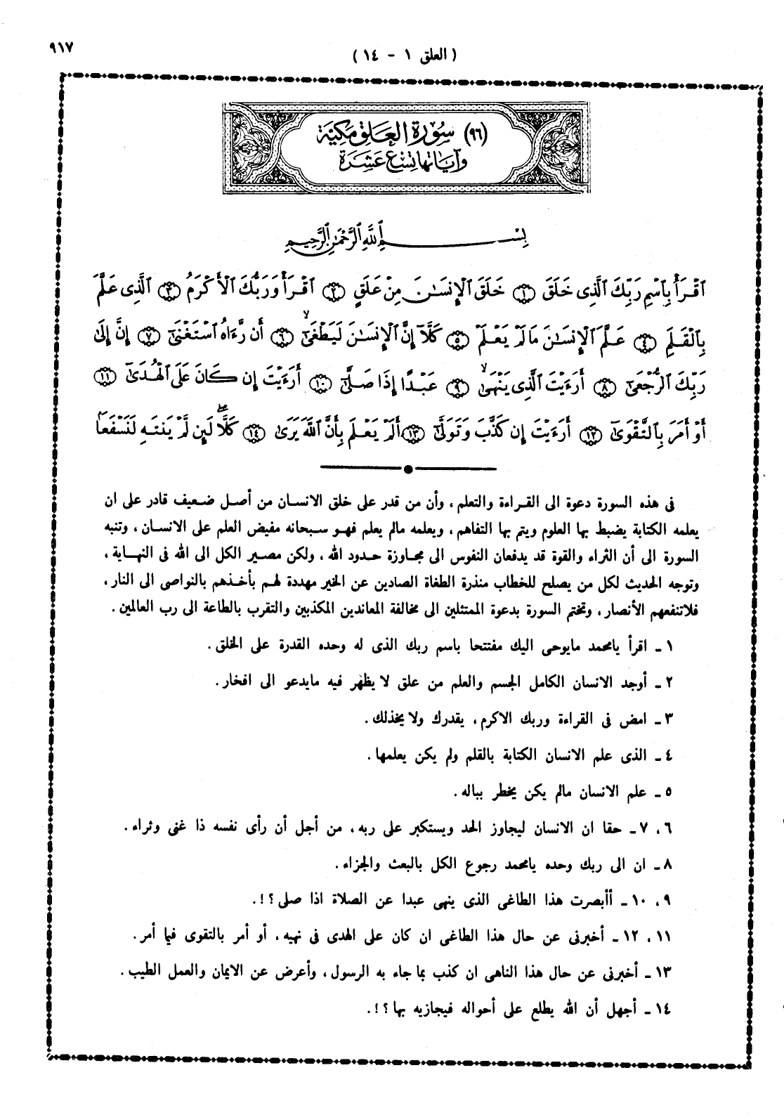1 - اقرأ - يا محمد - ما يوحى إليك مفتتحاً باسم ربك الذى له - وحده - القدرة على الخلق.