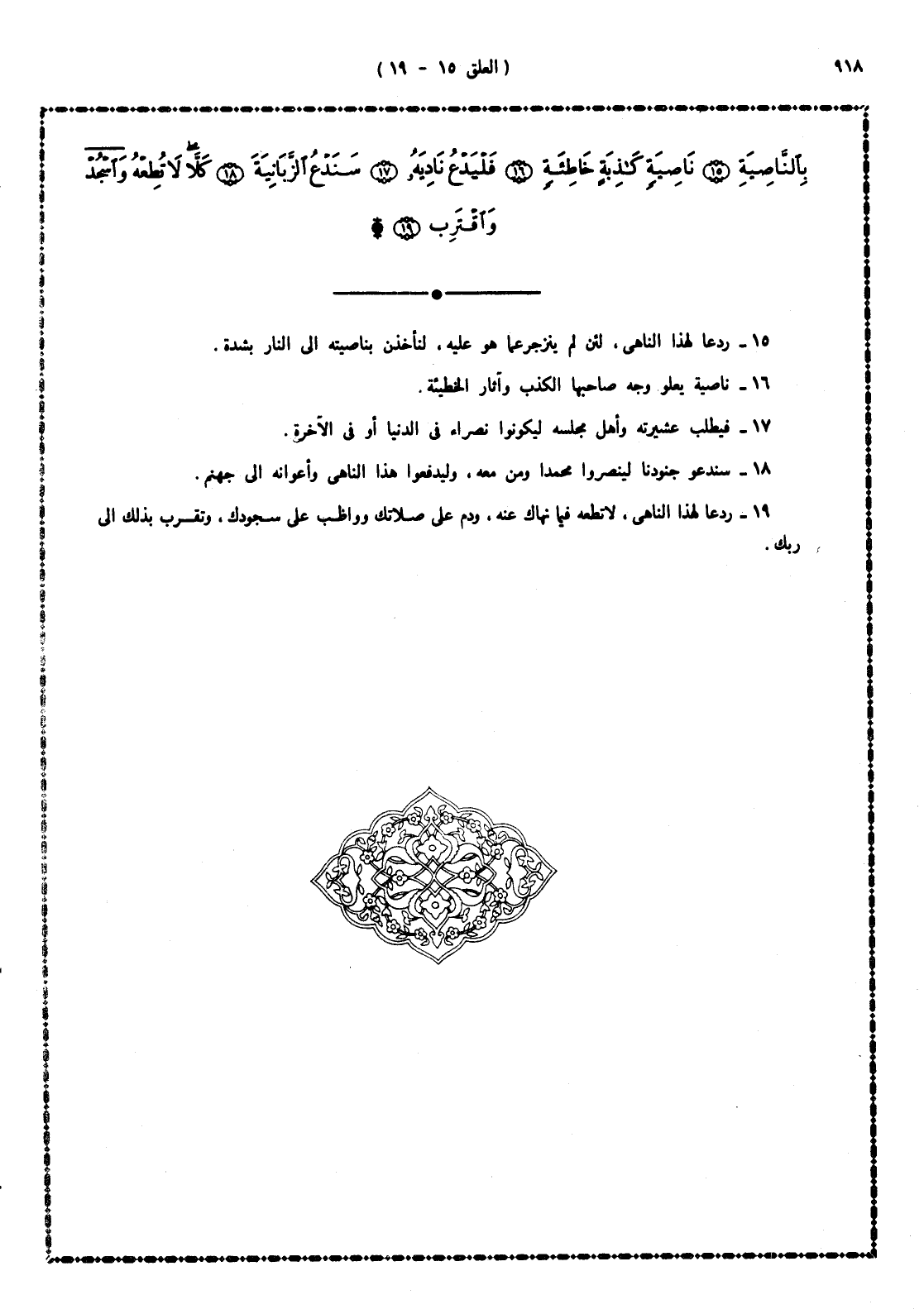 15 - ردْعاً لهذا الناهى، لئن لم ينزجر عما هو عليه لنأخذن بناصيته إلى النار بشدة.