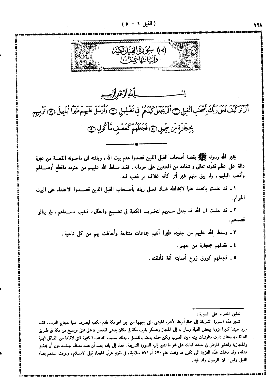 1 - قد علمت - يا محمد - علماً لا يخالطه شك فِعْل ربك بأصحاب الفيل؛ الذين قصدوا الاعتداء على البيت الحرام.