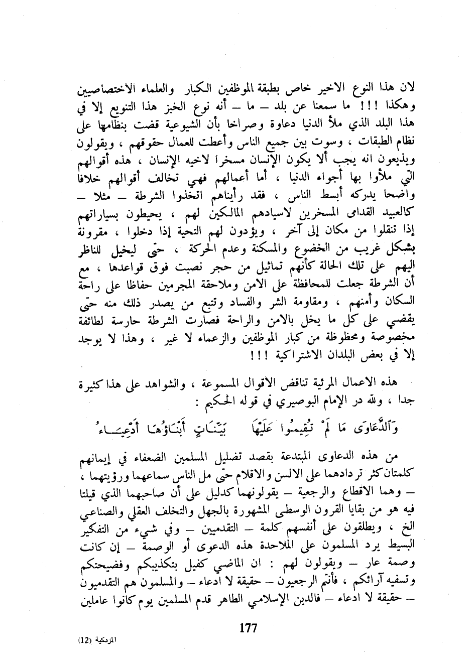 من هذه الدعاوى المبتدعة بقصد تضليل المسلمين الضعفاء في إيمانهم كلمتان كثر تردادهما على الألسن والأقلام حتى مل الناس سماعهما ورؤيتهما، - وهما الإقطاع والرجعية - يقولونهما كدليل على أن صاحبهما الذي قيلتا فيه هو من بقايا القرون الوسطى المشهورة بالجهل والتخلف العقلي والصناعي الخ، ويطلقون على أنفسهم كلمة - التقدميين - وفي شيء من التفكير البسيط يرد المسلمون على الملاحدة هذه الدعوى أو الوصمة - إن كانت وصمة عار - ويقولون لهم: أن الماضي كفيل بتكذيبكم وفضيحتكم وتسفيه آرائكم، فأنتم الرجعيون - حقيقة لا ادعاء - والمسلمون هم التقدميون - حقيقة لا ادعاء - فالدين الإسلامي الطاهر قدم المسلمين يوم كانوا عاملين