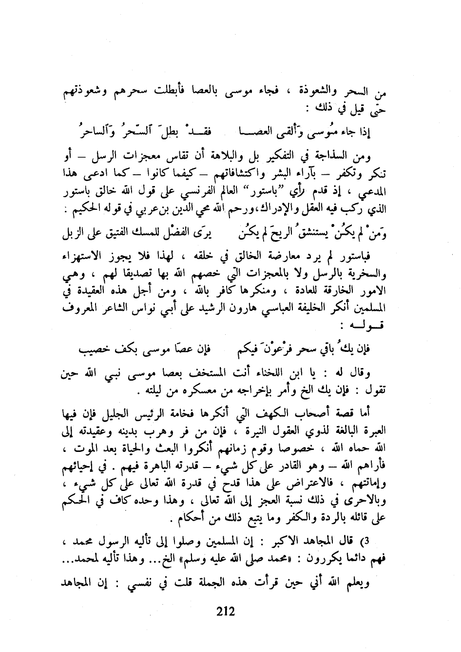 فباستور لم يرد معارضة الخالق في خلقه، لهذا فلا يجوز الاستهزاء والسخرية بالرسل ولا بالمعجزات التي خصهم الله بها تصديقا لهم، وهي الأمور الخارقة للعادة، ومنكرها كافر بالله، ومن أجل هذه العقيدة في المسلمين أنكر الخليفة العباسي هارون الرشيد على أبي نواس الشاعر المعروف قوله: