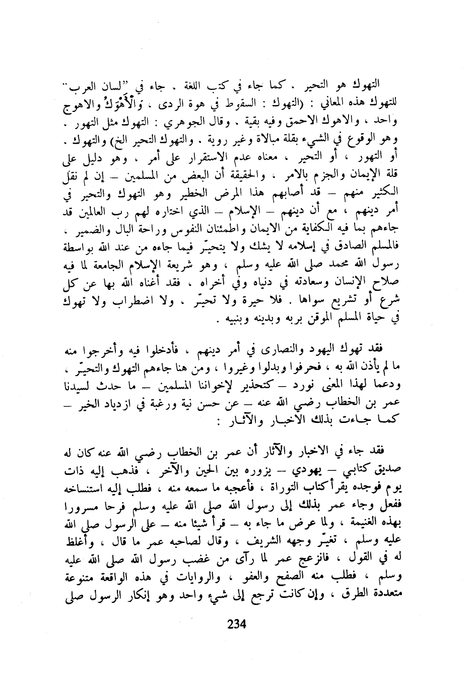 فقد تهوك اليهود والنصارى في أمر دينهم، فأدخلوا فيه وأخرجوا منه ما لم يأذن الله به، فحرفوا وبدلوا وغيروا، ومن هنا جاءهم التهوك والتحير، ودعما لهذا المعنى نورد - كتحذير لإخواننا المسلمين - ما حدث لسيدنا عمر بن الخطاب رضي الله عنه - عن حسن نية ورغبة في ازدياد الخير - كما جاءت بذلك الأخبار والآثار: