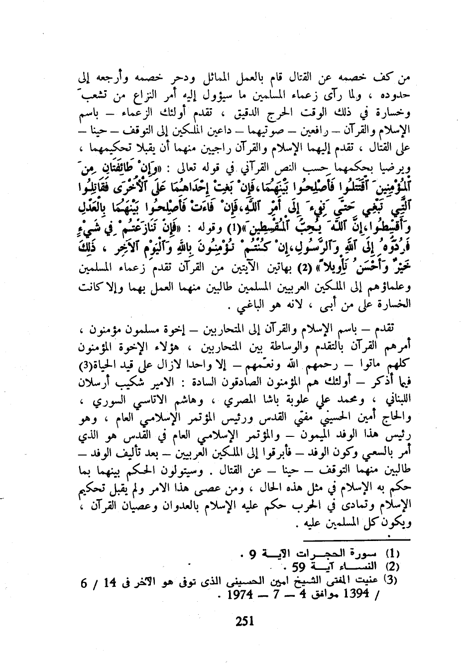 (¬3) عنيت المفتي الشيخ أمين الحسيني الذي توفي هو الآخر في 14/ 6 / 1394 موافق 4 - 7 - 1974.