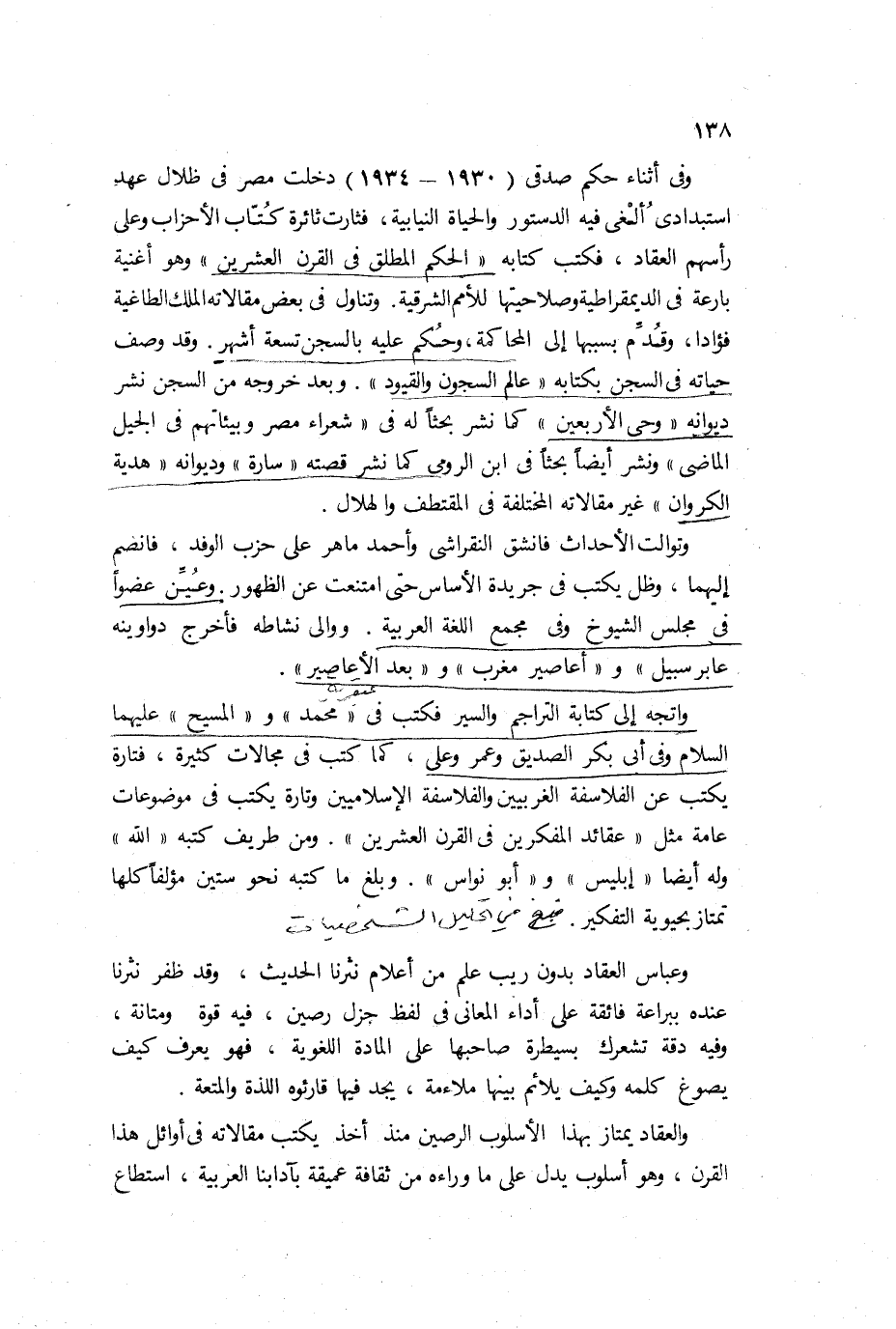 وفي هذه الفترة -أي: في العشرة الثالثة من هذا القرن- رأى العقاد وهيكل وطه حسين والمازني أن ينقلوا إلى قرائهم مباحث الأدب والنقد الغربية، ويشفعوها بنظرات تحليلية في المفكرين الغربيين. وكان ذلك سببًا في ظهور ملاحق أدبية للصحف اليومية، فأخرج هيكل السياسة الأسبوعية، وأخرج العقاد أو أخرجت جريدة البلاغ الوفدية مجلة البلاغ الأسبوعية، ونتج عن ذلك نهضة أدبية واسعة. وأخذ هؤلاء الكُتاب يجمعون مقالاتهم الممتازة في كتب وينشرونها، فنشر العقاد غير كتاب مثل: "مراجعات في الآداب والفنون" و"مطالعات في الكتب والحياة" و"الفصول"، وهي تصور هذا الجهد العقلي الخصب الذي اضطلع به في حياتنا الأدبية، فقد نقل إلينا كثيرًا من الأفكار الأوربية التي لم تكن تعرفها العربية، وسلَّط عليها من شخصيته ما طبعها بطابعه الخاص.