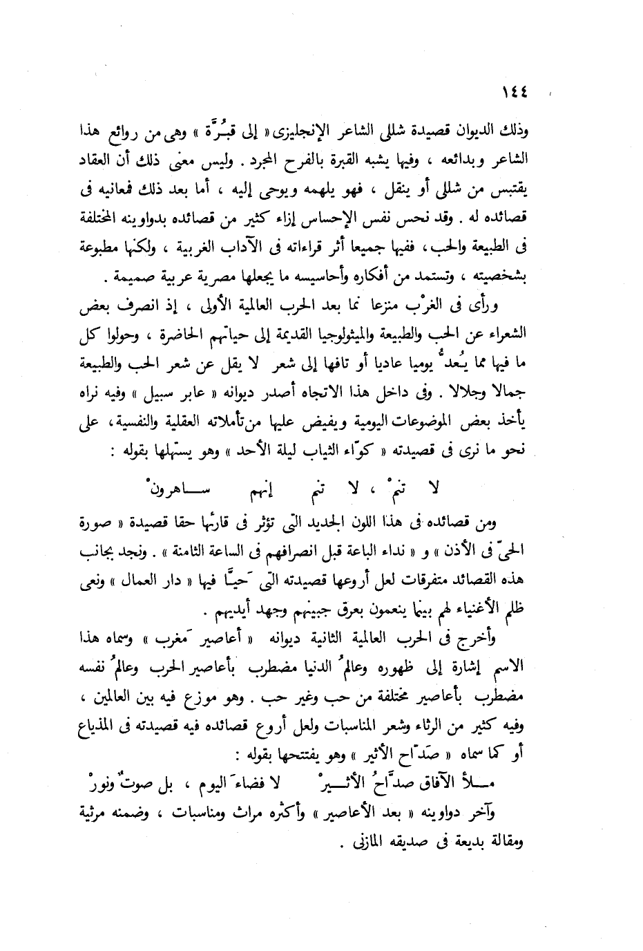 وهذه الأنغام التي نستقبلها من ديوانه الأول المكوَّن من أربعة أجزاء هي نفس الأنغام التي نستقبلها بعد ذلك في دواوينه التي أخرجها من بعده، أو هي على الأقل أغلب تلك الأنغام. فقد أخرج ديوانًا سماه "وحي الأربعين"، وأكثره تأملات في الحياة وخواطر في الحب والطبيعة. وتلاه بديوان سماه "هدية الكروان"، نظم فيه كثيرًا من القصائد في هذا الطائر المصري الذي يملأ ليالي الوادي بأناشيده العذبة وترتيلاته الشجية، وأمُّ هذه القصائد قصيدته: